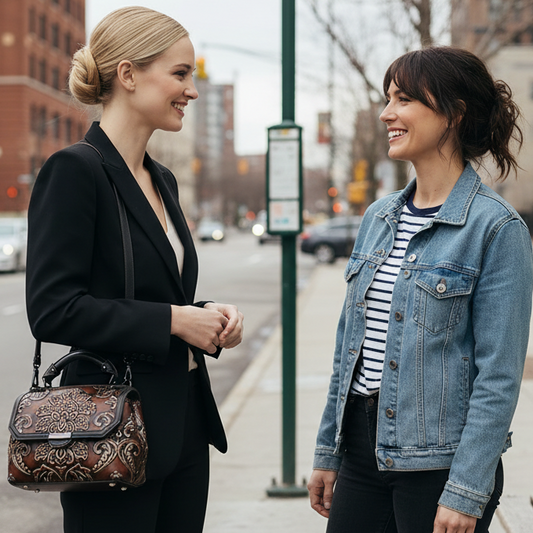 Picardo Embossed Floral Applique Genuine Cowhide Handbag