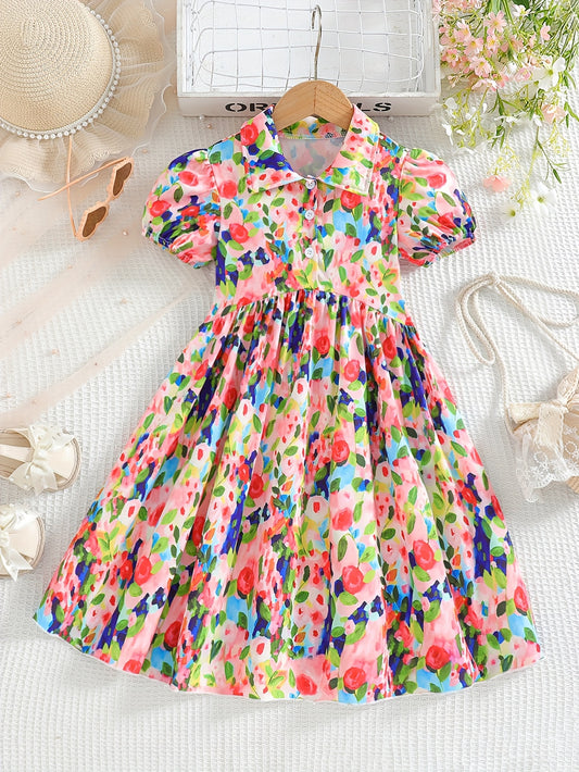 Monet Floral Bubble Sleeve Dress