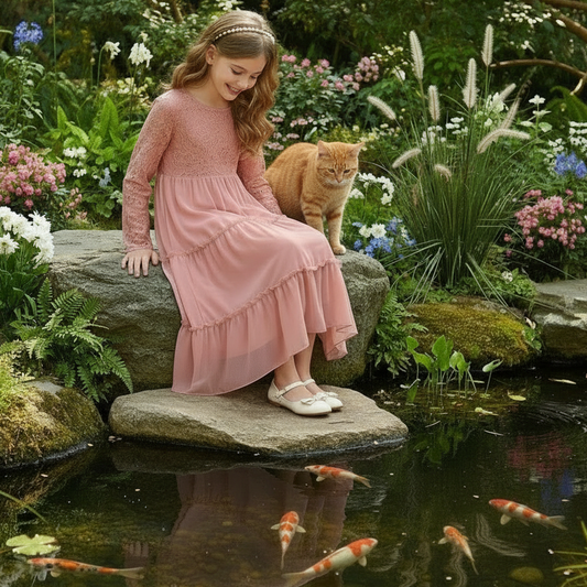 Ruffle Sleeve Knit Cotton Dress for Girls
