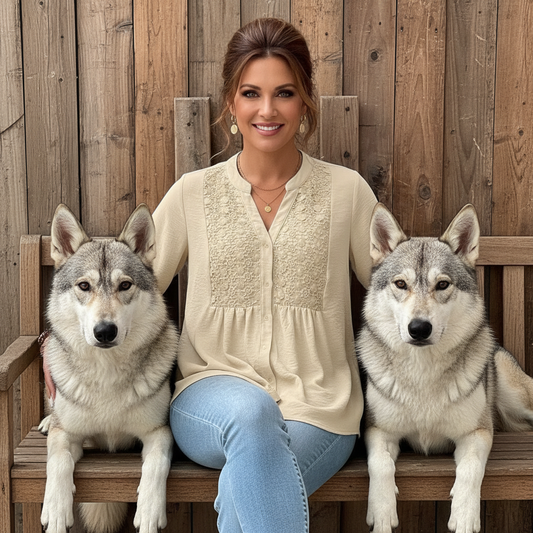 PRIVÉ Notched Neckline Shirred Sleeve Polyester Blouse
