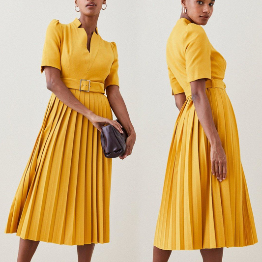 Lautaro Haining Genuine Leather A-Line Midi Skirt