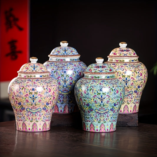 Vintage Chinese Enamel Ceramic Decorative Jars