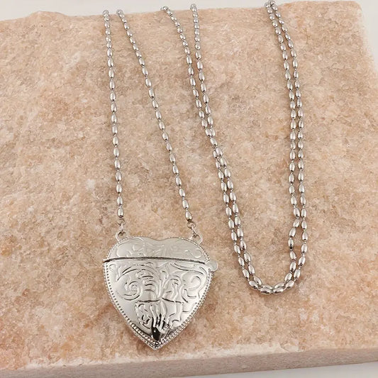 Sweet Silver Heart Embossed Necklace