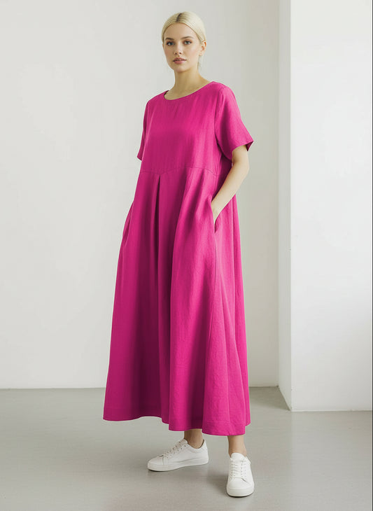 Valentina Ribbed Lightweight Pleated Maxi Dress