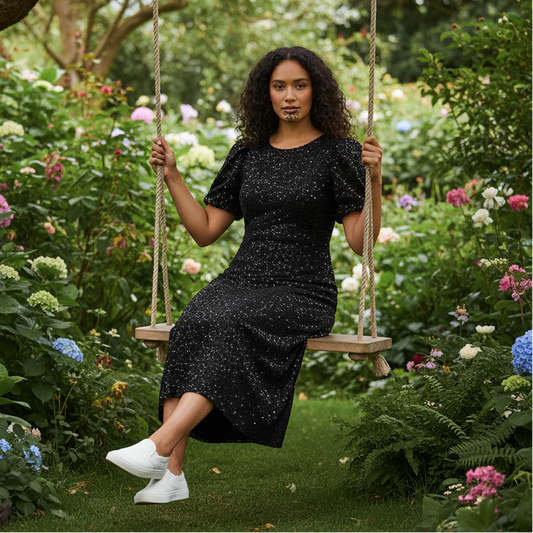MODELYN Floral Jacquard Notched Neck Short Sleeve Midi Dress