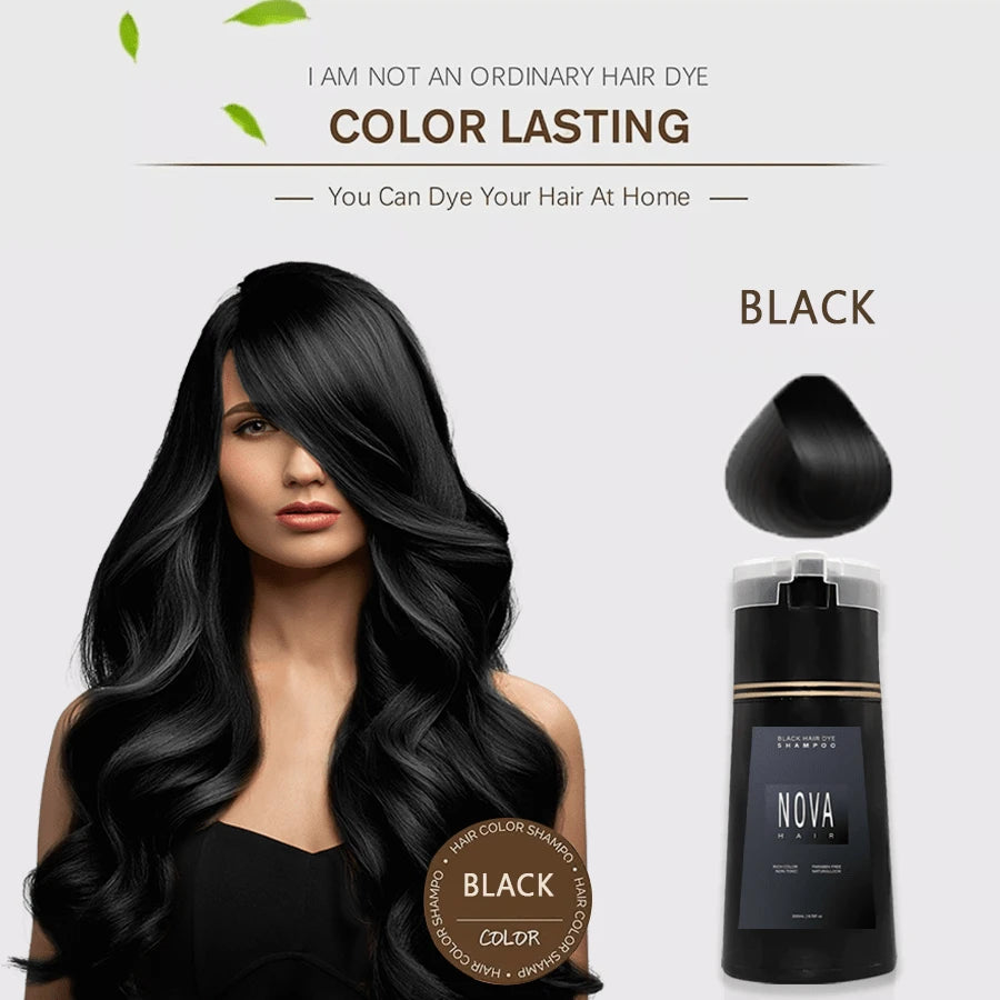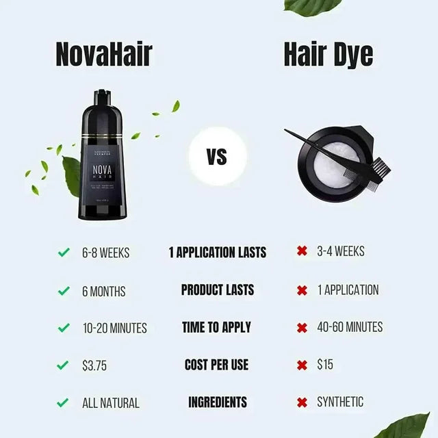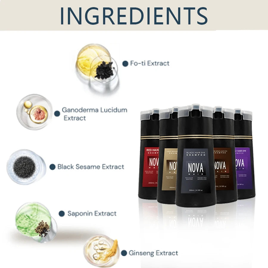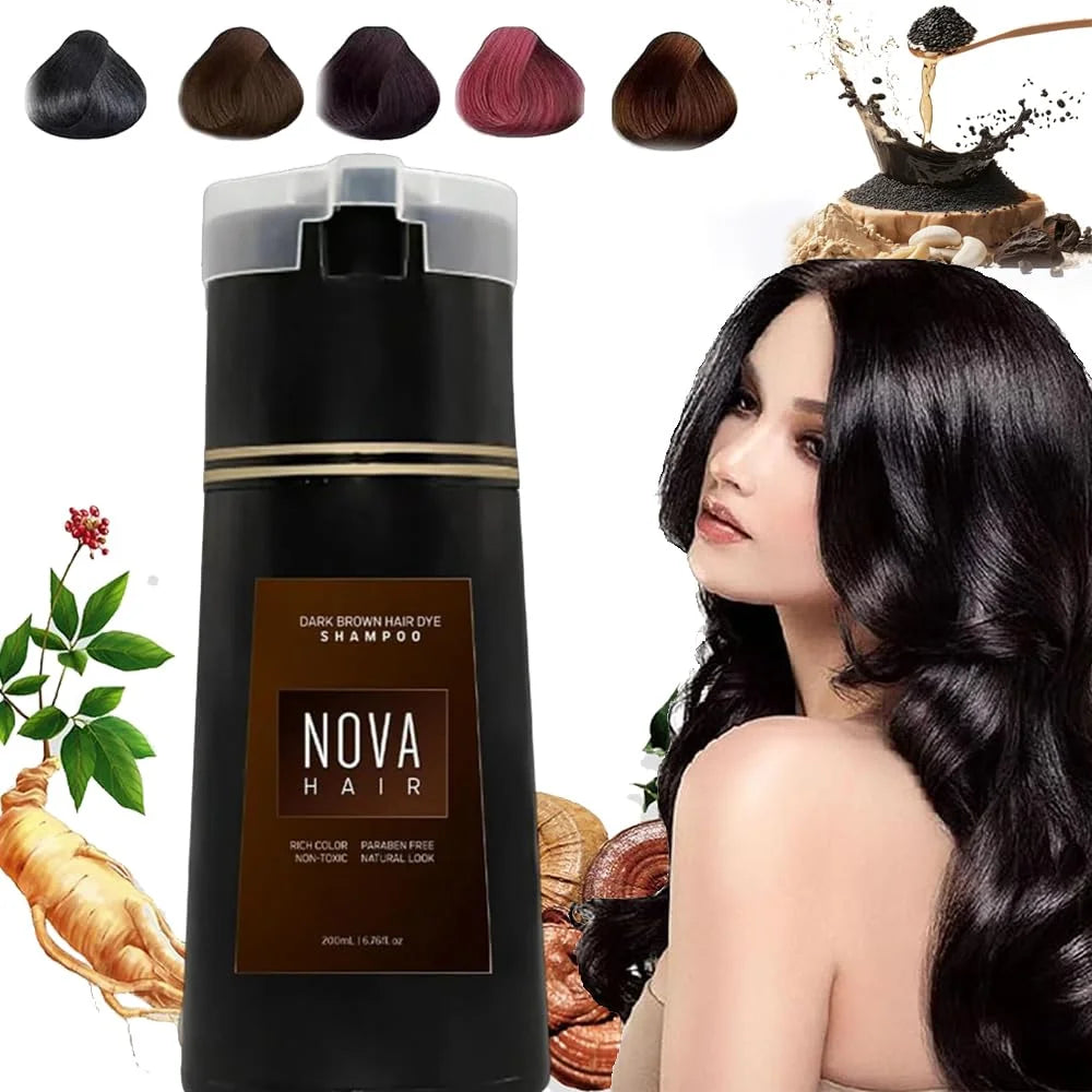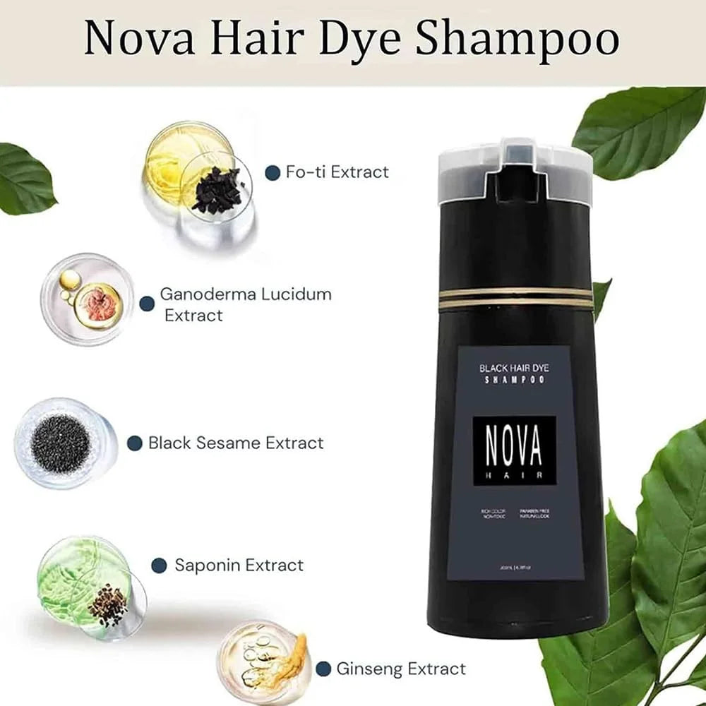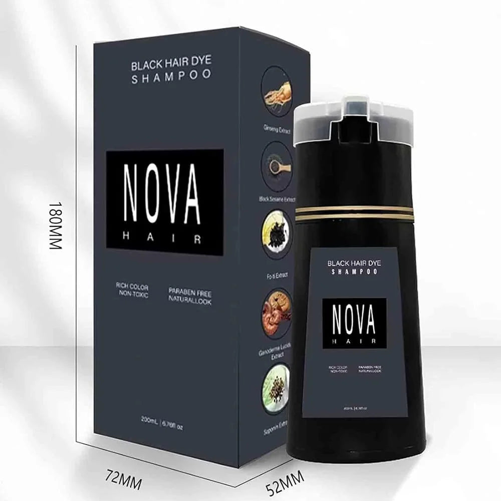Natural Ingredients: Nova Hair Color Shampoo is enriched with natural ingredients that nourish your hair while covering greys, leaving it shiny and healthy without harsh chemicals.