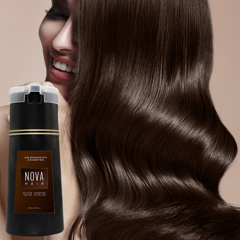Natural Ingredients: Nova Hair Color Shampoo is enriched with natural ingredients that nourish your hair while covering greys, leaving it shiny and healthy without harsh chemicals.