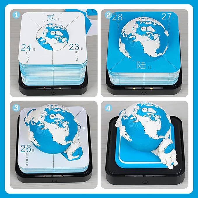 Size & Weight: Compact yet impressive at 9.8 x 9.8 x 8.5 cm and weighing 757g, this calendar is a perfect decorative piece for desks or shelves.