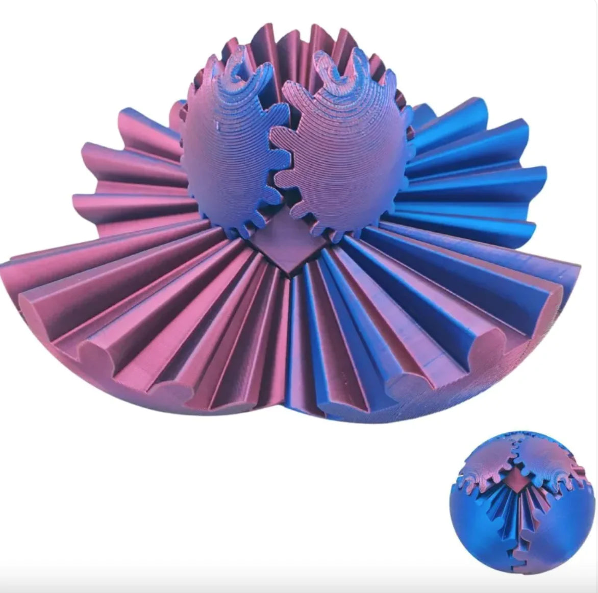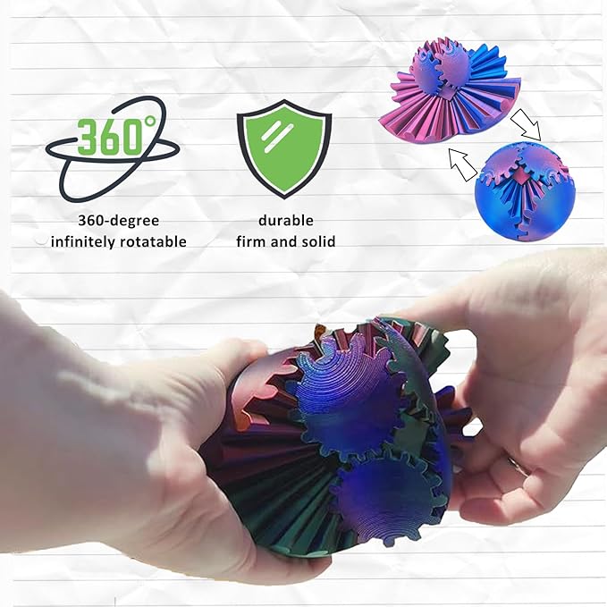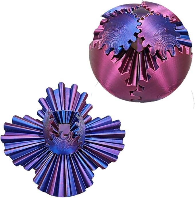 Innovative gear fidget ball designed with 3D printing technology, features intricate rotating gears for a fascinating, hands-on experience, ideal as a fidget toy, desk decoration, or educational tool, promotes focus and creativity, perfect for all ages.