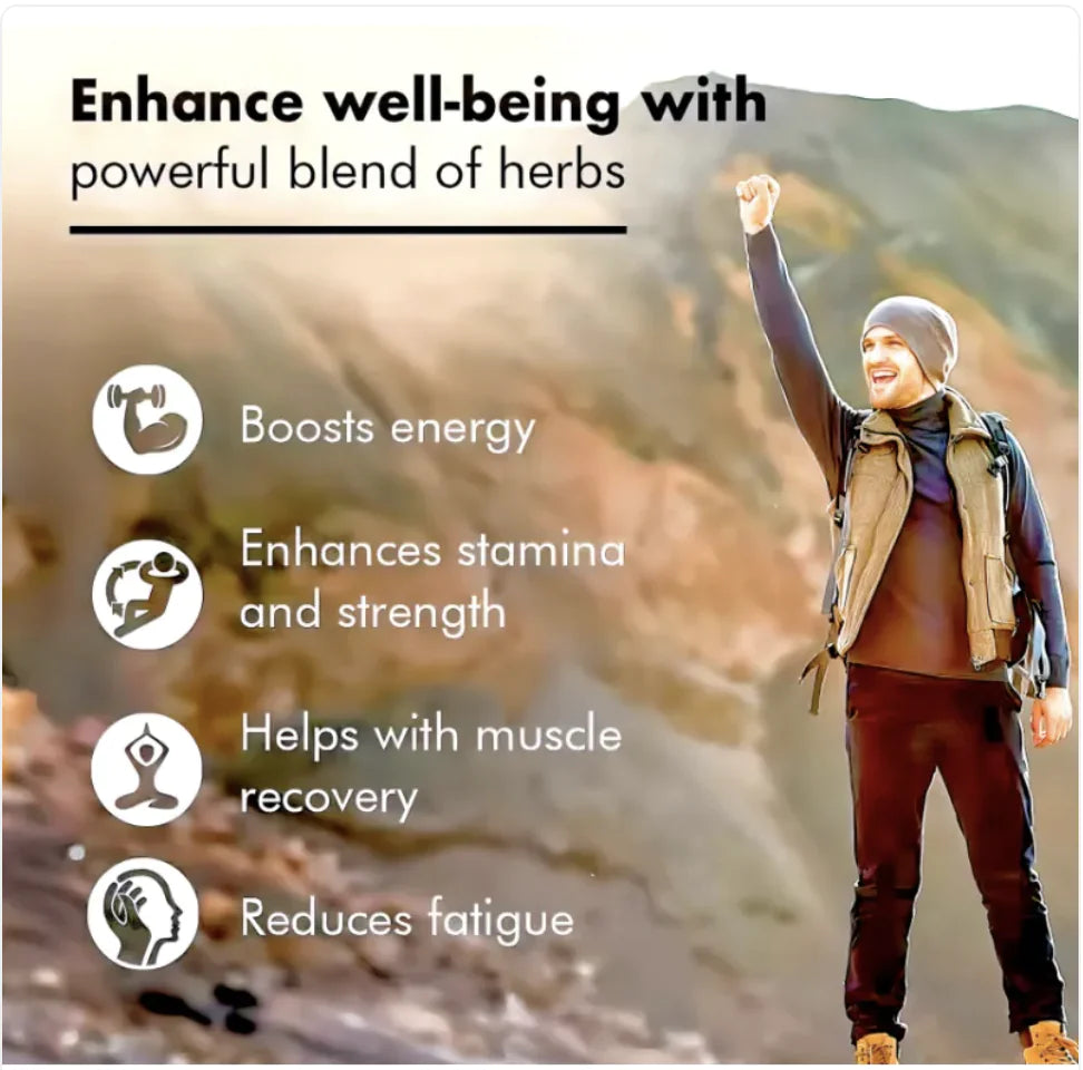 Strengthen & Revitalize - Our all-in-one formula combines the benefits of Himalayan Shilajit Resin, Ashwagandha, Saffron, Gokshura, and Safed Musli. These potent herbs work together to help enhance strength, accelerate muscle recovery post-workout, reduce fatigue, and promote overall well-being.