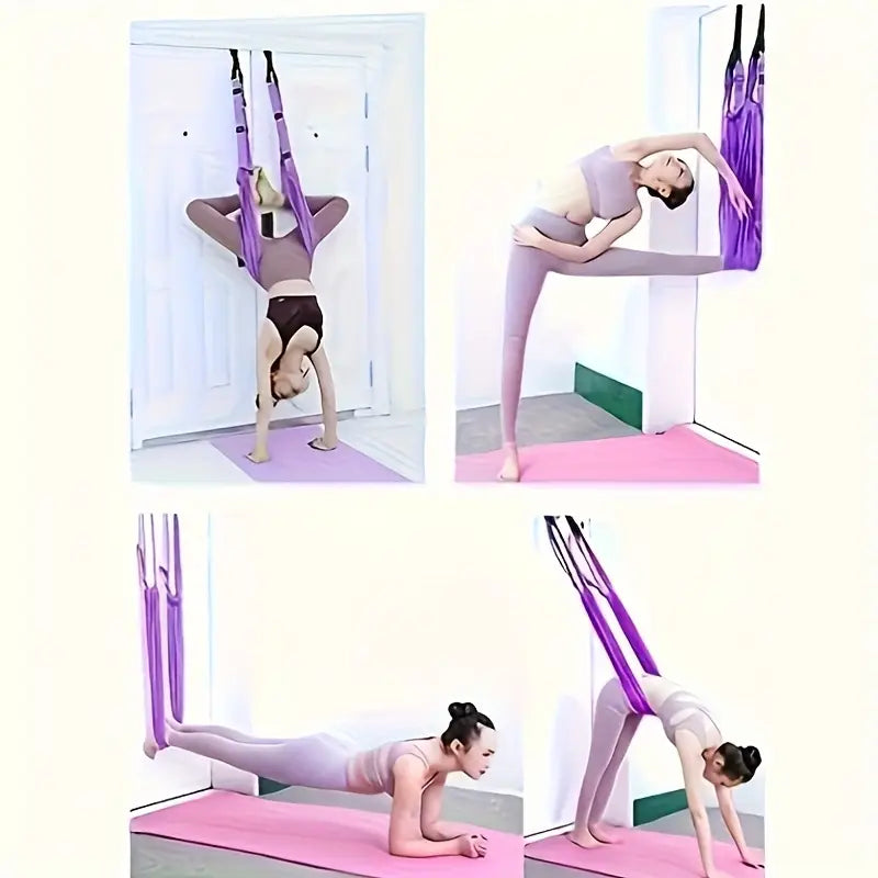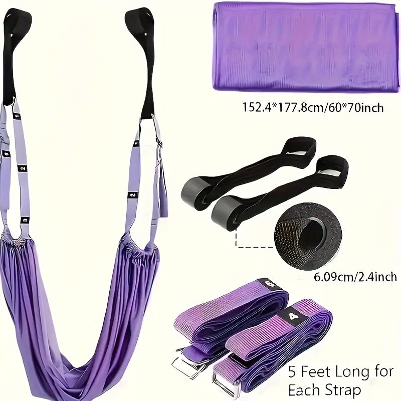Experience the flexibility of this Medium Tension Purple Aerial Yoga Hammock with Resistance Bands, designed for ballet, gymnastics, and Pilates. Ideal for stretching, building core strength, and enhancing flexibility, it suits all fitness levels. Featuring durable metal rings, this versatile fitness gear supports a wide range of workouts to elevate your training routine.
