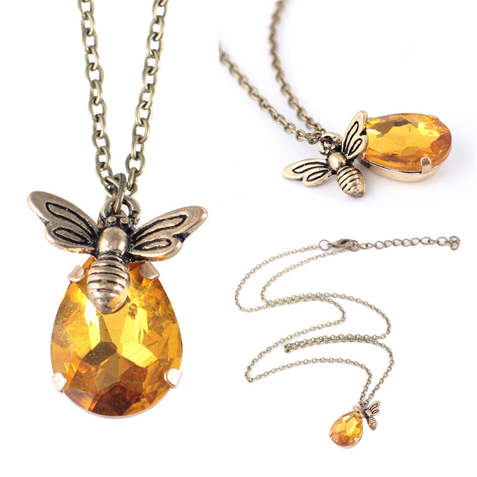 Add a Touch of Radiance with an Amber Crystal and Vintage Bee Pendant - Enhance your style with the mesmerizing beauty of an amber crystal pendant. Its warm, golden hues and sparkling facets catch the light, creating a captivating aura that complements any outfit with elegance.