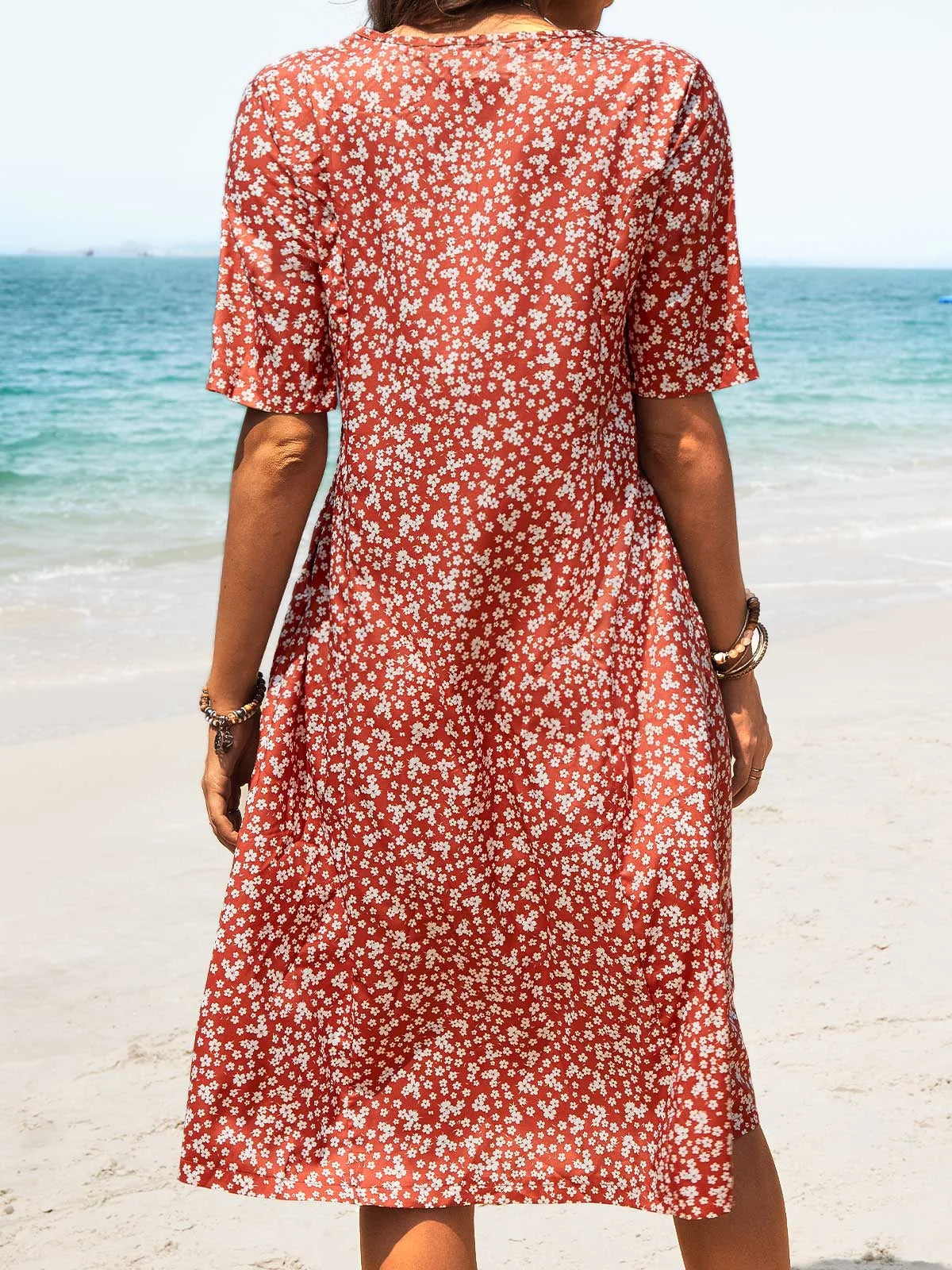 This dress is not just stylish; it features functional pockets that add convenience to your daily wear. Whether you're heading out for brunch, a casual day at the office, or a relaxed weekend outing, this dress has you covered.