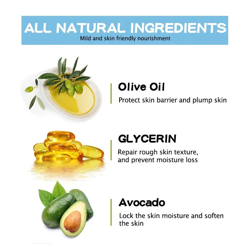 GLYCERIN: Repair rough skin texture, and prevent moisture loss.