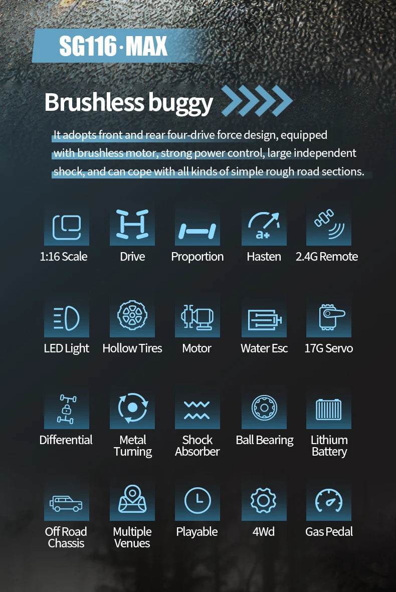 Reach an adrenaline-pumping top speed of 80KM/H with the BEAST MAX brushless, high-power four-wheel drive RC off-road racing car or the BEAST PRO. Engineered with a rugged metal differential and smooth stepless speed control, its tough PVC shell conquers any terrain. Crafted for serious racers aged 8 and up, this pro-level simulation machine is the ultimate thrill for competitive adventurers.