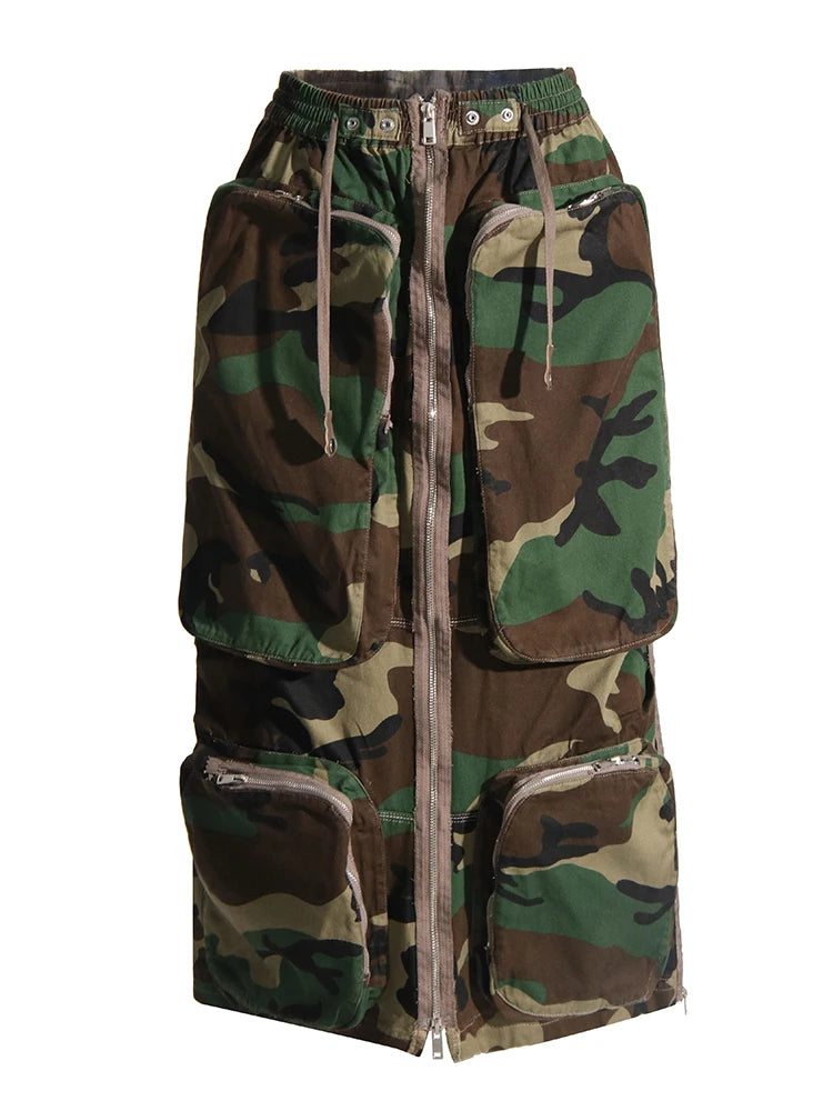 Make a Bold Fashion Statement Stand out from the crowd with the edgy and trendy Multi Pocket Cargo Skirt. The bold camouflage pattern is a nod to military-inspired fashion, giving you a distinctive look that's sure to turn heads. Pair it with a simple tee or a fitted tank for a chic, laid-back ensemble that exudes confidence and style.