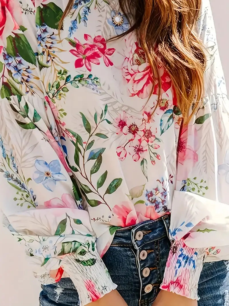 Elevate your everyday look with the Mia Floral Shirred Cuff Blouse - the perfect blend of comfort and fashion!