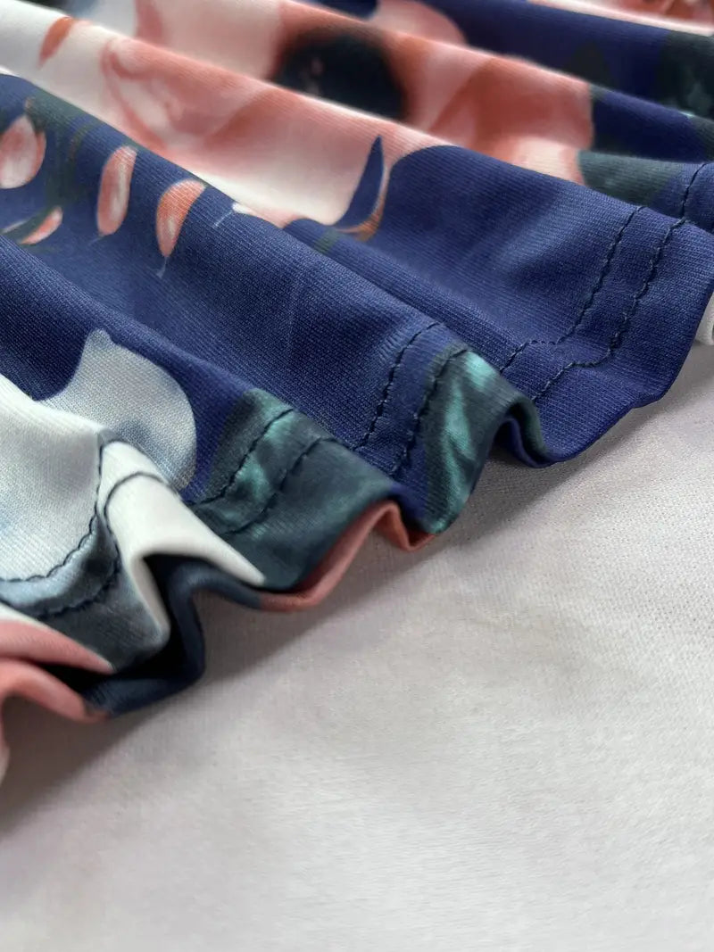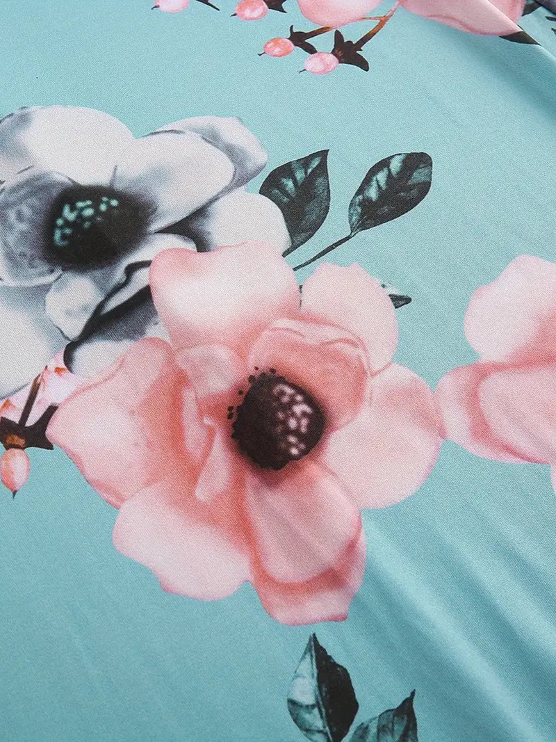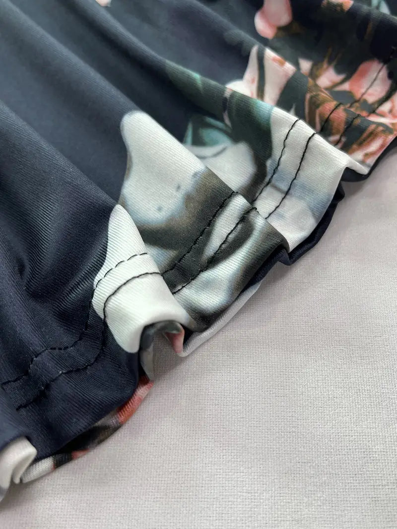 Available in a range of sizes from S to 3XL, every woman can find her perfect fit. Choose from classic hues like black, duck egg blue, and navy blue, ensuring you make a statement wherever you go. Embrace the essence of summer with its Boho-inspired floral print, adding a touch of whimsy to your wardrobe. The high neck bandage design exudes elegance and coverage.