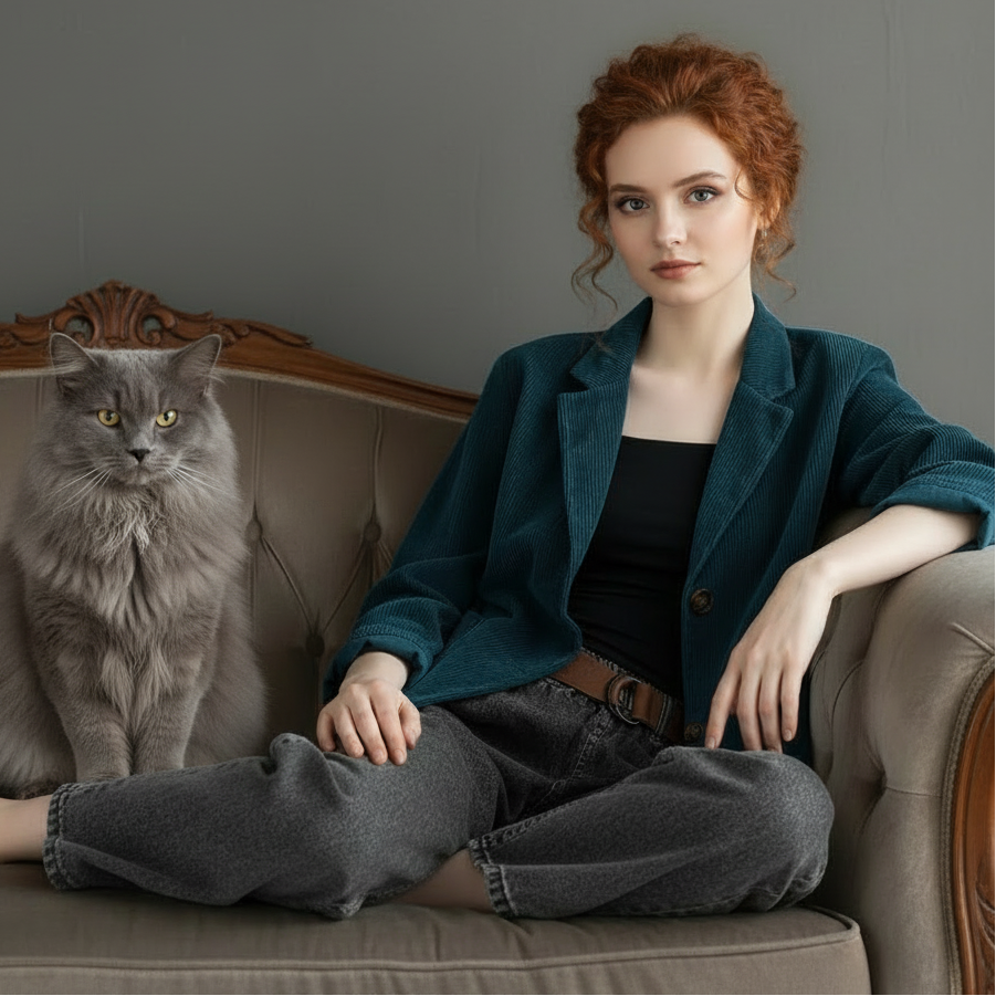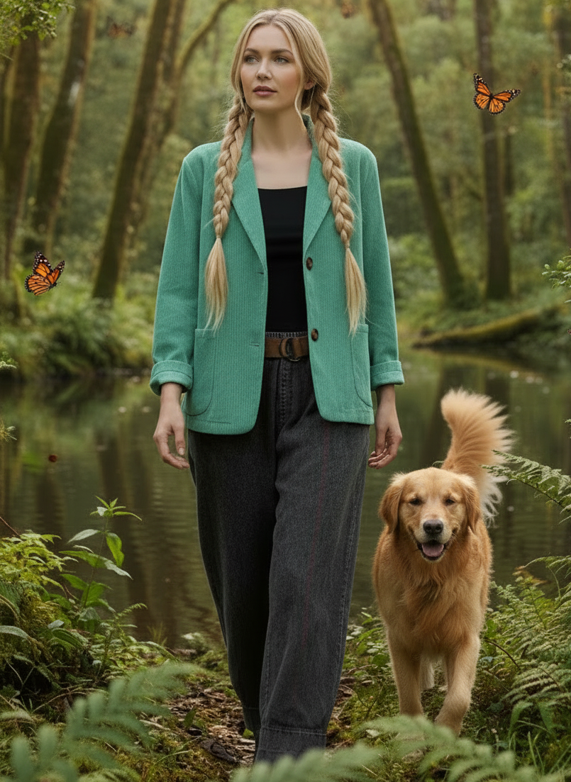 Step out in style with this chic cord blazer, featuring a refined lapel collar, long sleeves, and a button-up front. Perfect for any season, this jacket offers fashionable and versatile outerwear for women who appreciate timeless design.