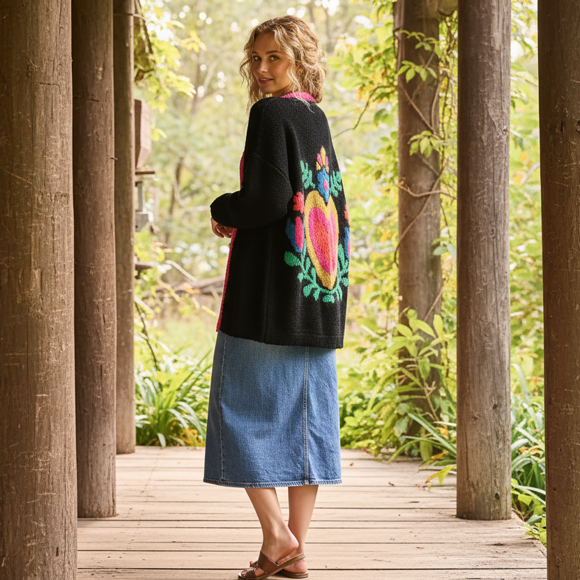 Chic Heart Knit Cardigan Coat