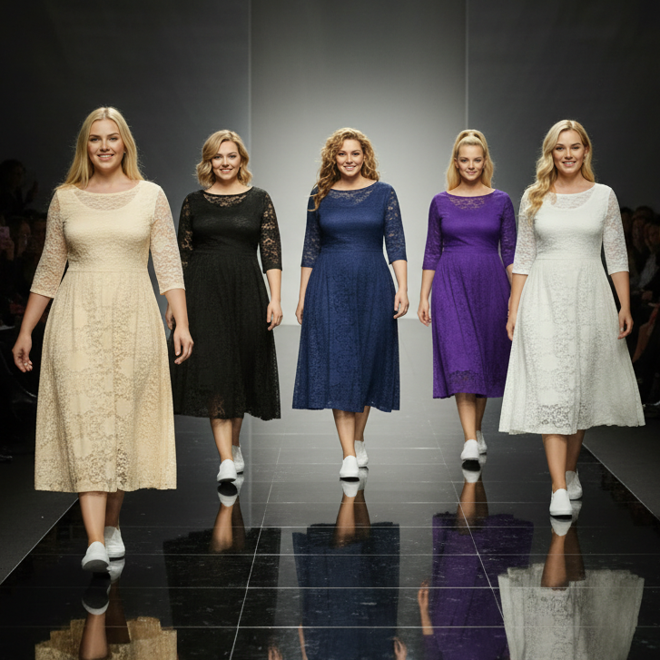 Step into elegance with our stunning Curve Size Half Sleeve Casual Women Midi Dress. This dress is not only a fashionable choice for spring but also a perfect outfit for weddings, parties, and evening events. Designed with a beautiful lace finish, our Chic Plus Size Lace Midi Dress adds a touch of sophistication while ensuring that you feel comfortable and confident.