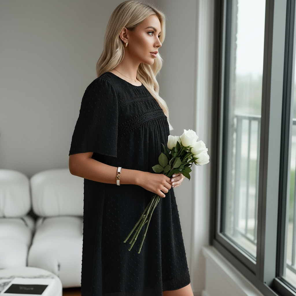 Step into spring and summer with this playful Chiffon Polka Dot Shortie Nightie! Boasting a cute round neck, fun short sleeves, and a breezy A-line shape, it’s made from soft chiffon that sways with every move adding just the right flirty finish to your cozy nightwear.