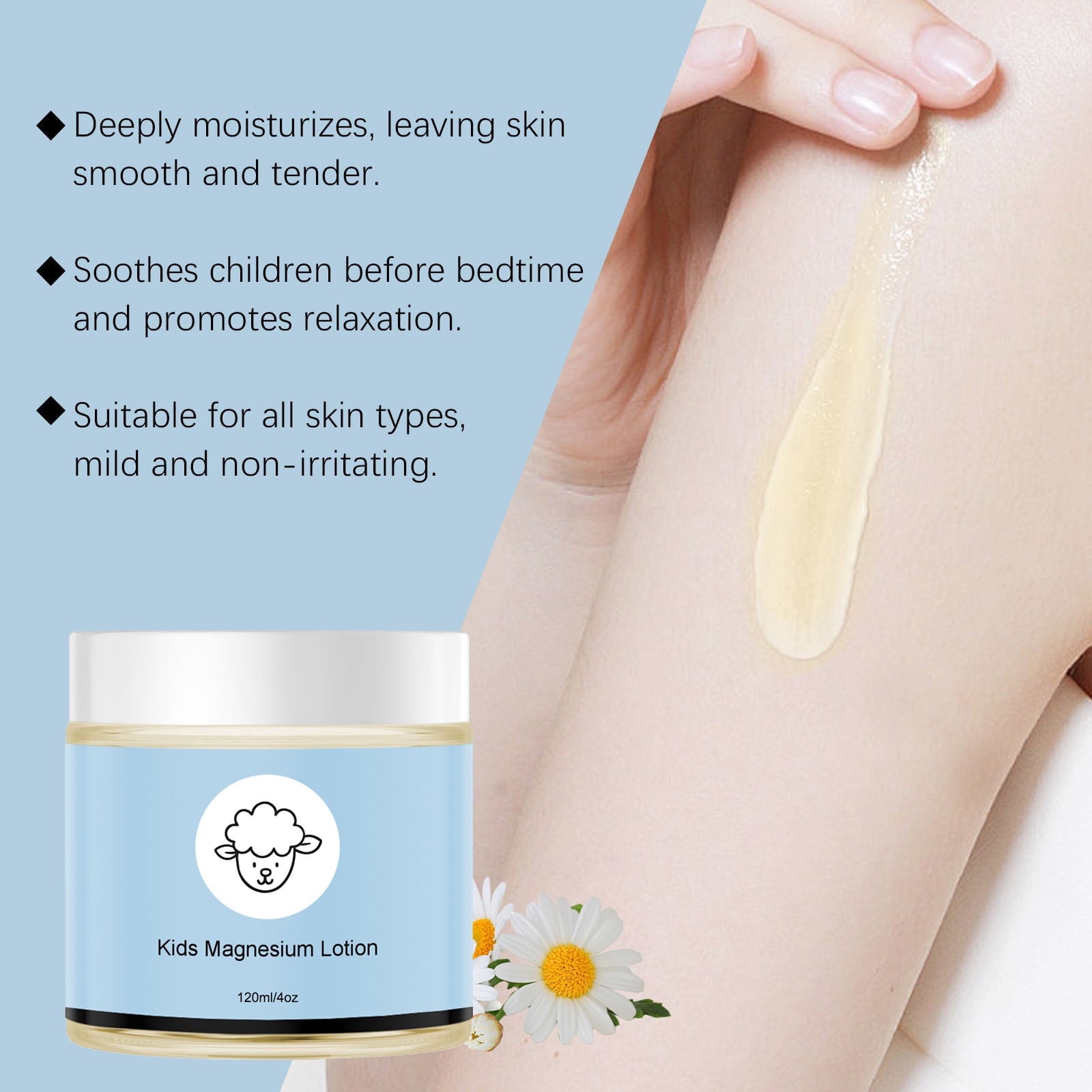 Soothe your child to sleep with Magnesium Bedtime Lotion. Our natural formula promotes relaxation and deep sleep, ensuring your child wakes up feeling refreshed. Say goodbye to restless nights and hello to peaceful sleep with our gentle, effective cream.