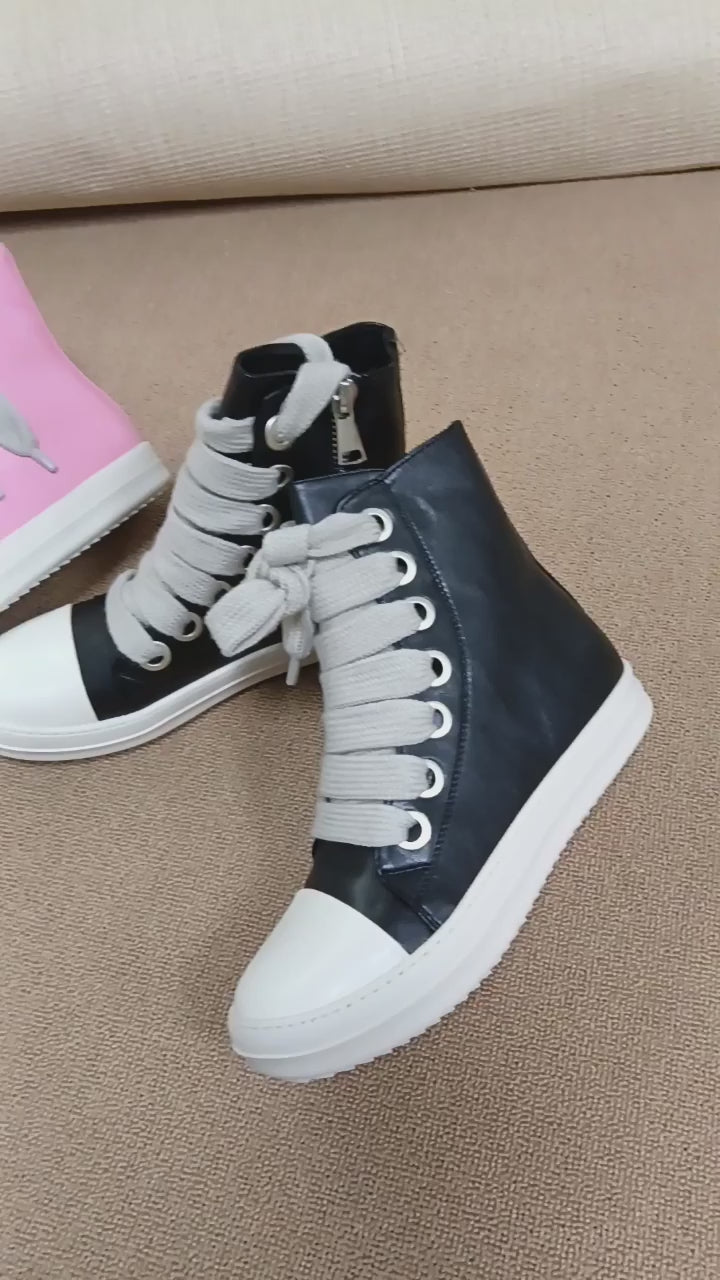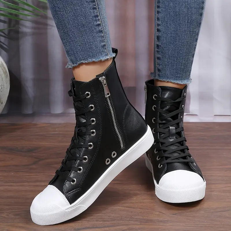 Introducing our College High Rise Vegan Leather Sneaker Boots, the perfect combination of style and ethics. Made with 100% vegan leather, these boots offer a cruelty-free alternative without compromising on quality. Rise up fashionably with these sustainable and durable Skateboard sneakers.