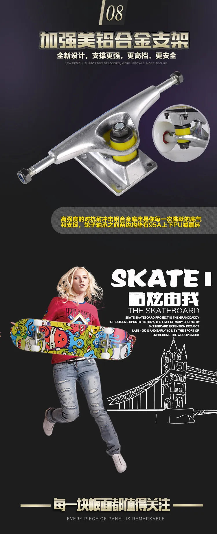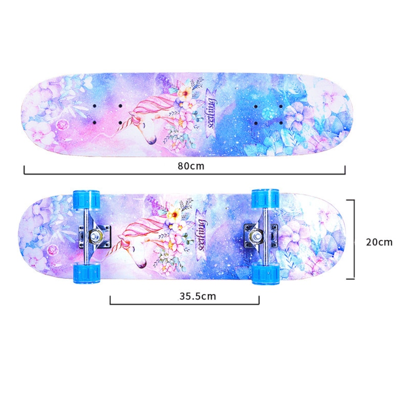 Crafted from durable materials, this Kingbox skateboard is built to withstand the rigors of daily use, ensuring a smooth ride every time. Its 80cm length provides stability and control, making it perfect for both learning and performing advanced tricks.