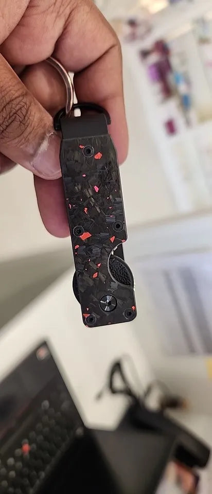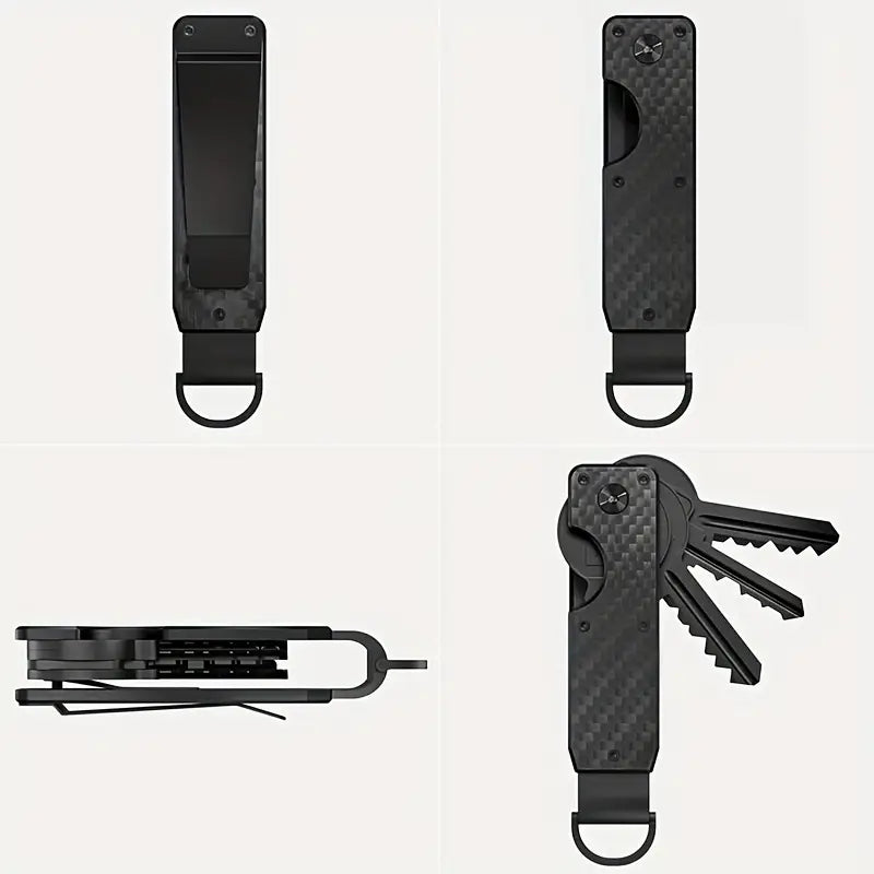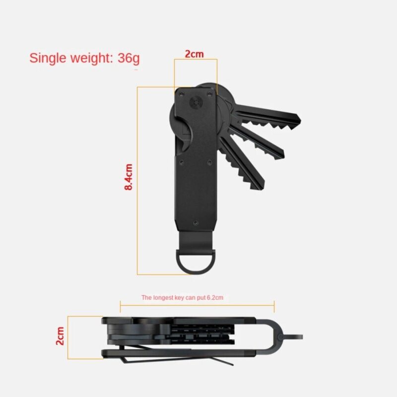 The Compact Metal Key Holder is compact to keep in your pocket or bag. A Metal clip is on one side for convenient to hang on your belt.