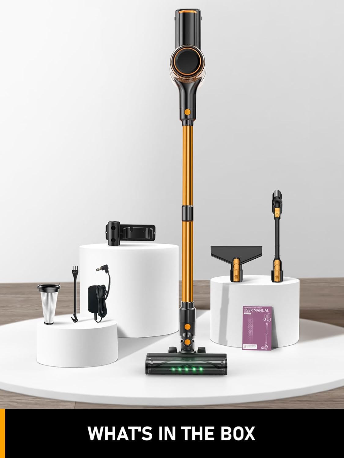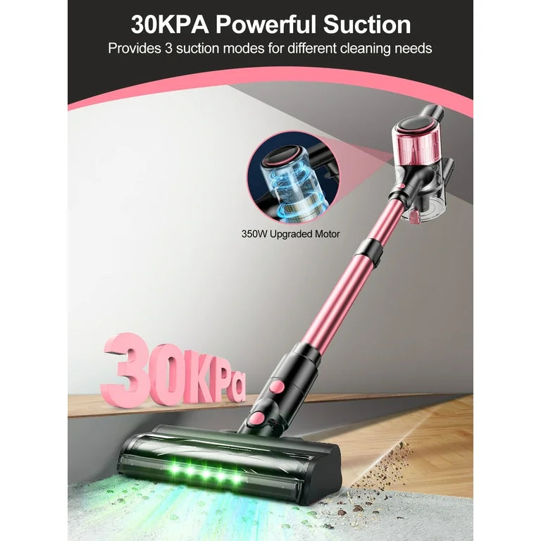Experience powerful cleaning with this cordless vacuum featuring strong suction, 45-minute runtime, and three adjustable suction settings. Equipped with an anti-tangle brush and enhanced green light, this versatile 8-in-1 vacuum is designed for hard floors, carpets, and pet hair. Its LED display makes operation simple, ensuring efficient cleaning across various surfaces.