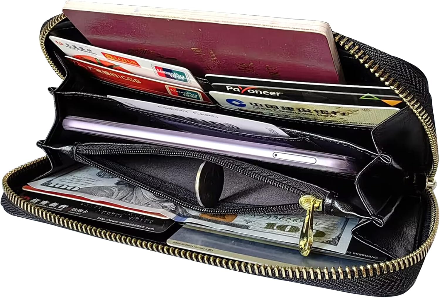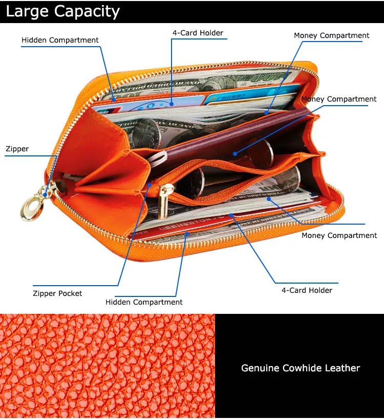 OX KNIGHT Litchie grain cowhide leather wallets. The ultimate accessory for the modern woman, leather multifunctional large capacity long zipper Wallets. Crafted from genuine cowhide leather, this wallet not only exudes elegance but also promises durability with its head layer cowhide material.