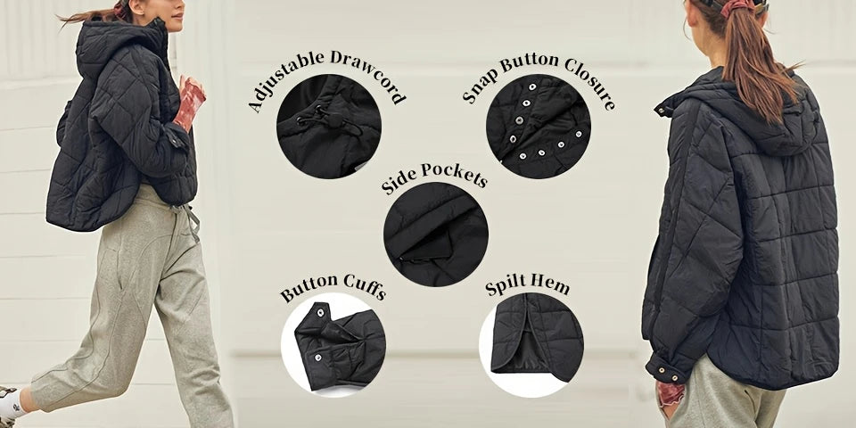 Stay cozy and stylish with Dames Pure Comfort Quilted Pullover Puffer, the perfect blend of practicality and fashion. Made from premium cotton, this lightweight, foldable oversized pullover jacket is designed to keep you warm and comfortable in all seasons.
