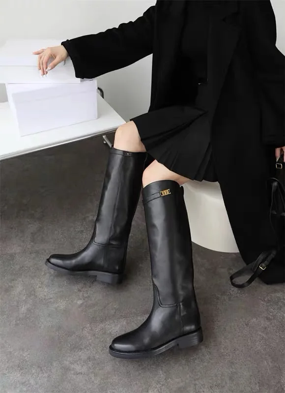 These DaveandDi Winter Boots combine minimalist style with fashion-forward design. Crafted from soft cowhide leather, these high boots offer both comfort and elegance, making them a must-have for women seeking durable and stylish footwear this season.