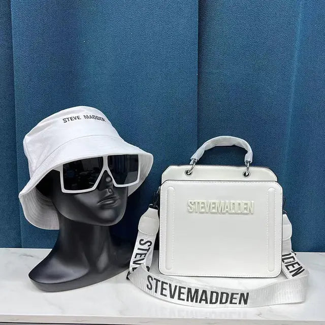 Complete your Look with our Elegant Steve Madden Evelyn Bag, Bucket Hat and Sunglasses Combo - Complete your ensemble with our stylish Steve Madden bucket hat and shades set, designed to add a touch of sophistication to any outfit. Whether shielding your eyes from the sun or making a fashion statement, our sunglasses offer both UV protection and timeless elegance. Paired with our fashionable bucket hat, crafted from high-quality materials, this set is a must-have accessory for any fashion enthusiast aiming to enhance their wardrobe with versatility and flair.