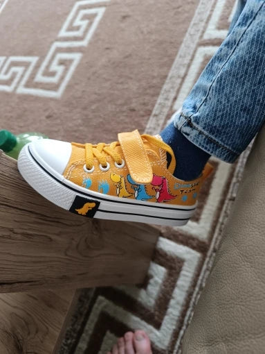 Adorable Dinosaur Canvas Low Top Sneakers for Boys and Girls are perfect for everyday wear. Made with a durable canvas upper and a flexible rubber sole, they offer both comfort and style.