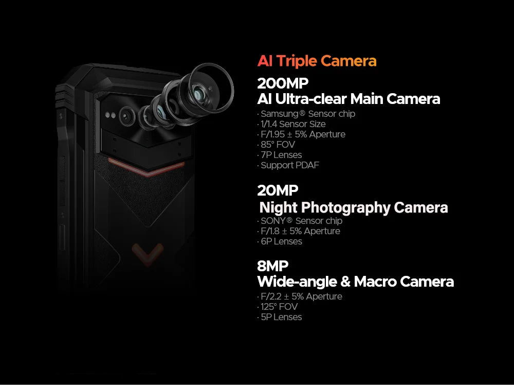 200MP AI main camera+20MP+8MP Wide Angle & macro camera |