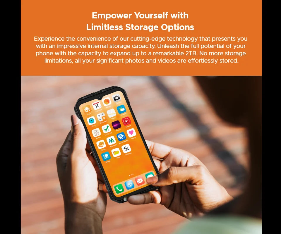 Experience the convenience of our cutting-edge technology that presents you with an impressive internal storage capacity. Unleash the full potential of your phone with the capacity to expand up to a remarkable 2TB. No more storage limitations, all your significant photos and videos are effortlessly stored.