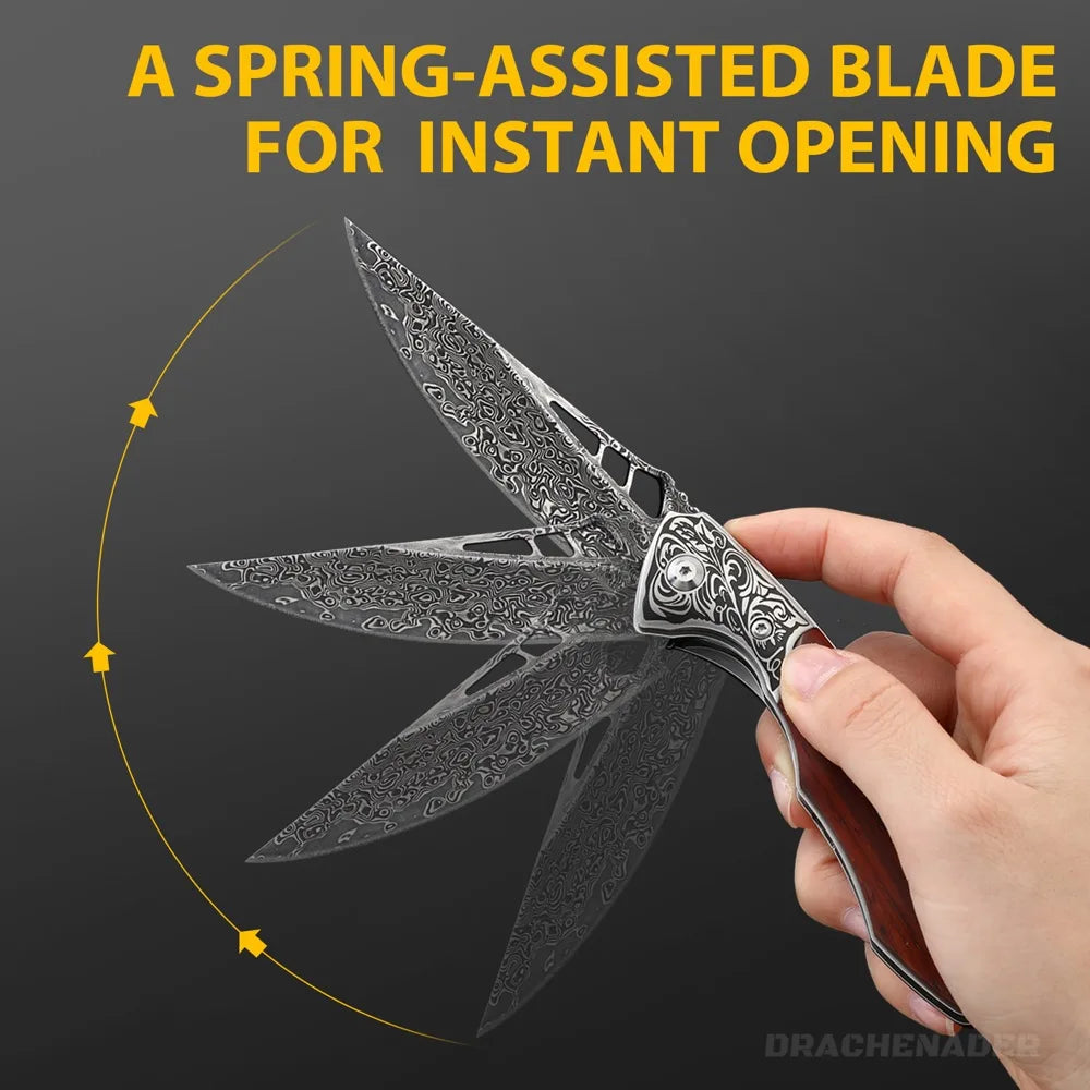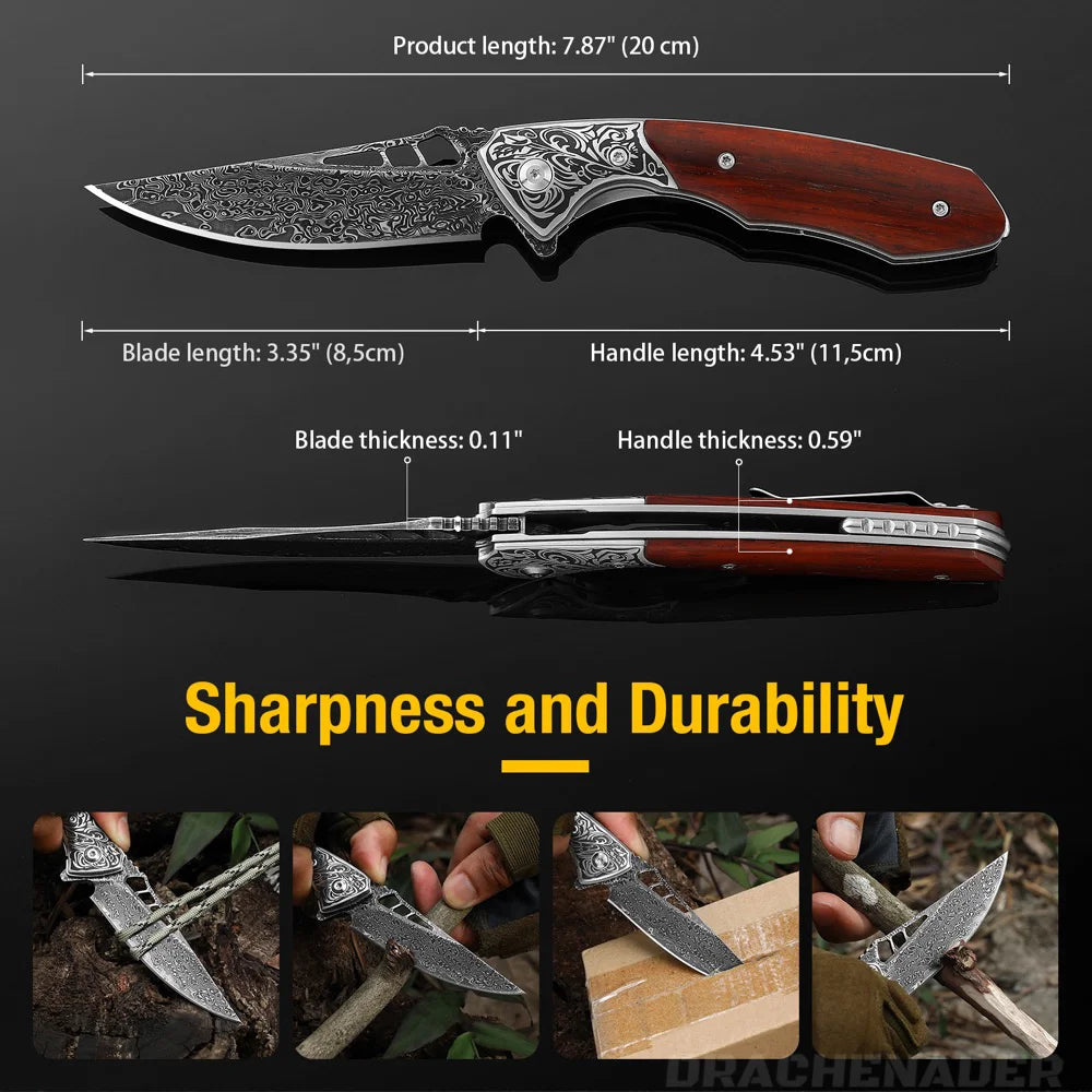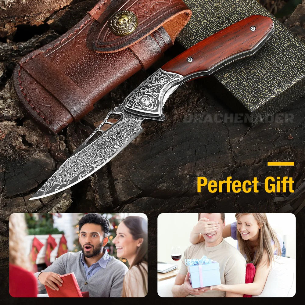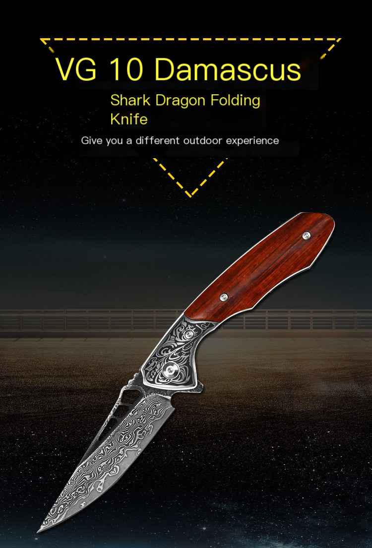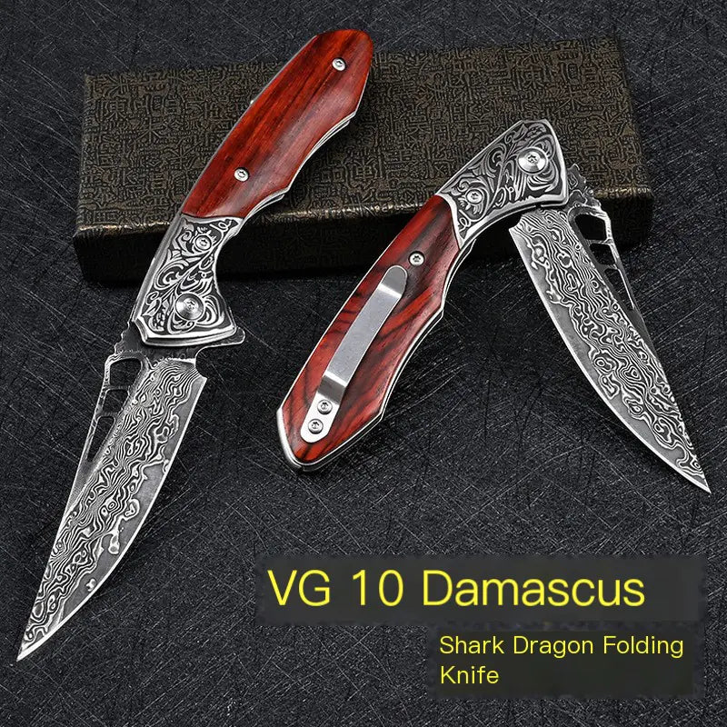 Experience unmatched precision and durability with the DRACHENADER VG 10 Damascus Shark Dragon Pocket Knife. Crafted from premium VG 10 Damascus steel, this knife offers exceptional sharpness and resilience, perfect for all your outdoor adventures. Its unique design combines style with functionality, making it an essential tool for camping, hiking, or everyday carry. Compact and reliable, it ensures you’re always prepared, no matter where your journey takes you. Elevate your gear with this striking and dependable pocket knife.