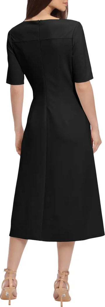 Unleash your inner confidence with this classic LBD, Maggy London Double Pleat A-Line Midi Dress. The flattering A-line silhouette and double pleats create a feminine and elegant look, while the midi length adds a touch of sophistication. Perfect for any occasion, this dress will make you feel stylish and confident all day.