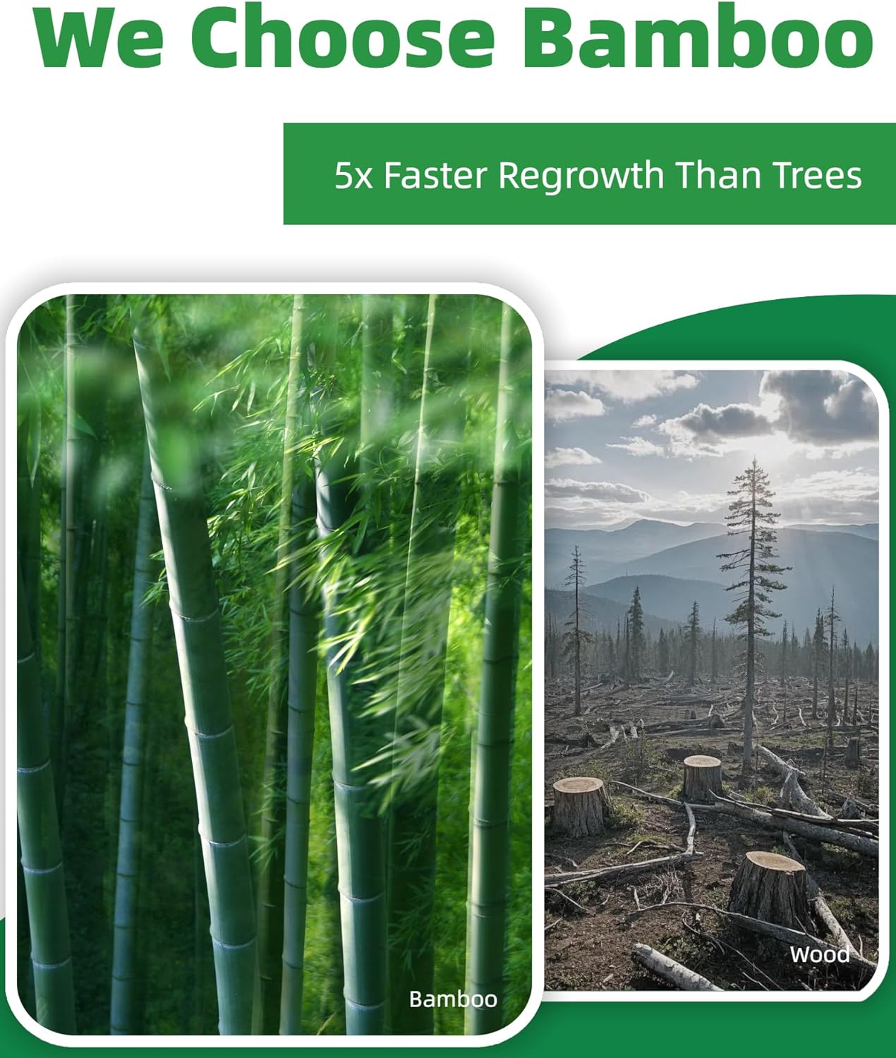 Better for the Soil - Bamboo is a grass, so it regrows from the same root when harvested - just like grass in a lawn. This causes less damage to the soil and land than clear-cutting trees.