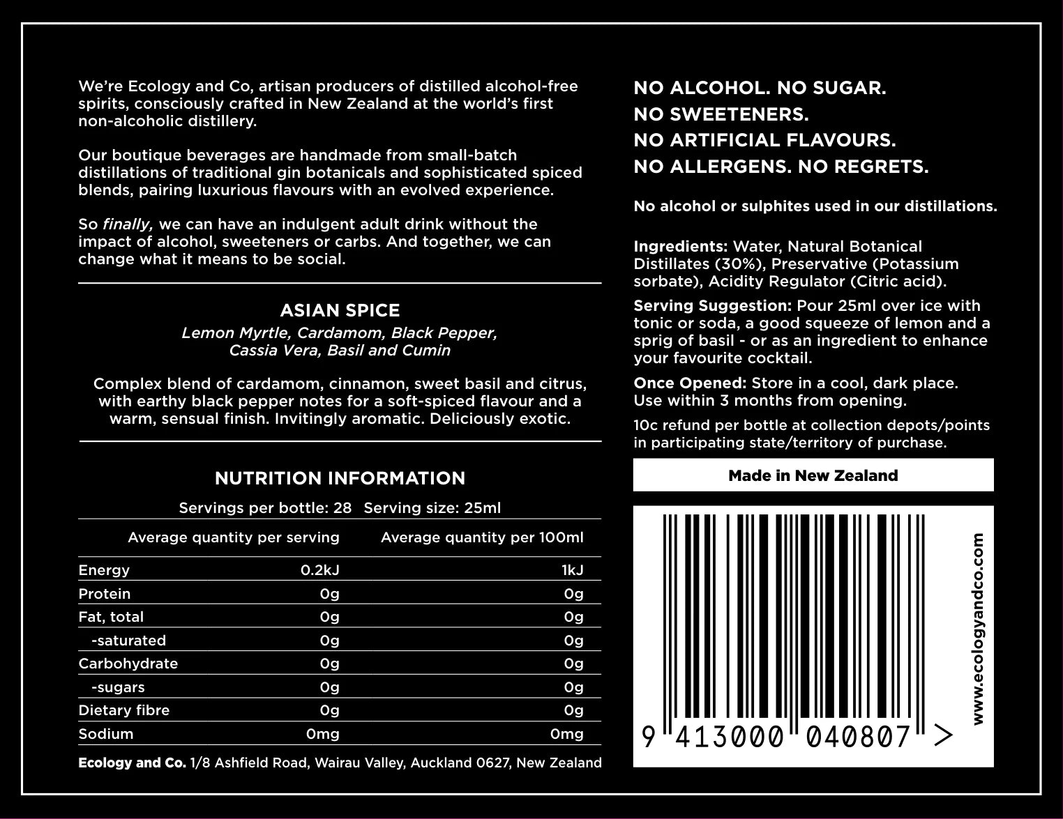 ASIAN SPICE CONTAINS - Cardamom, Black Pepper, Cassia, Basil, Cumin and Lemon Myrtle.