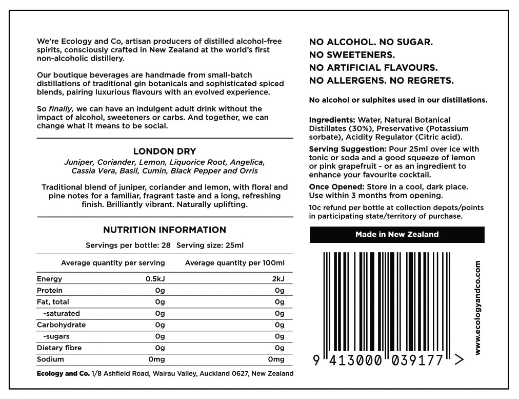 LONDON DRY CONTAINS - Juniper, Coriander, Lemon, Liquorice Root, Angelica, Cassia, Basil, Cumin, Black Pepper and Orris.