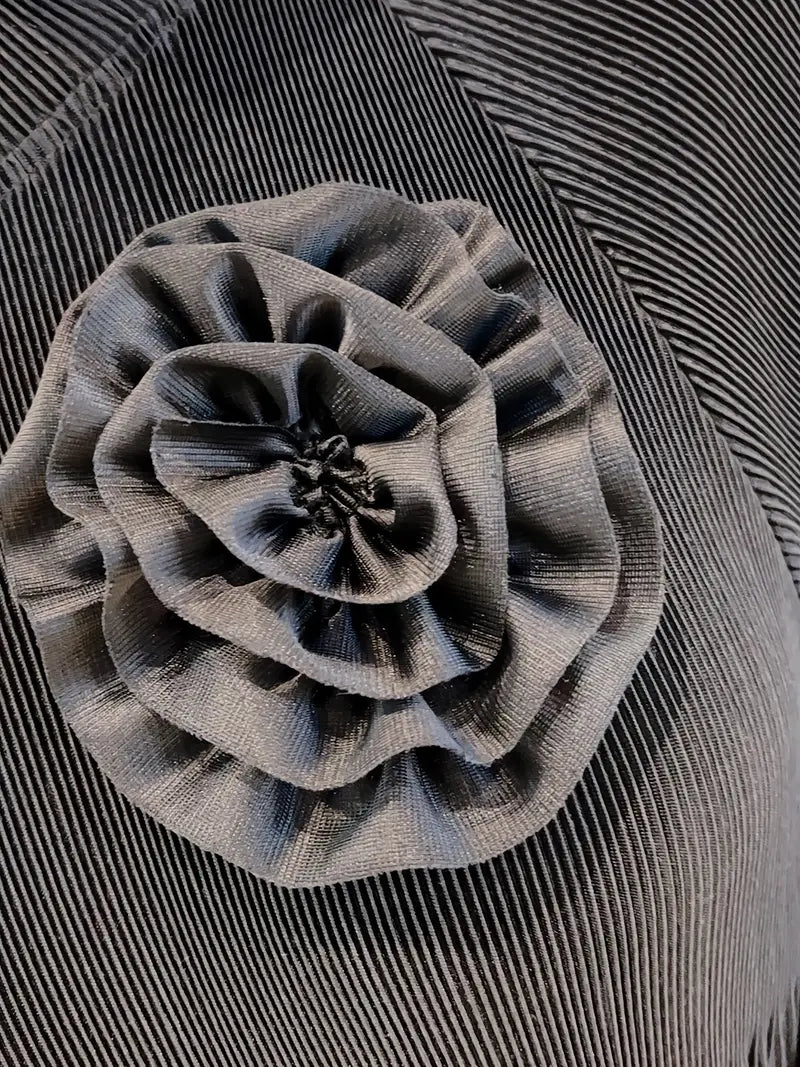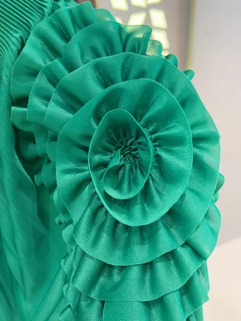 Elegant Floral Applique Fine Pleated Polyester Ruffle Dresses