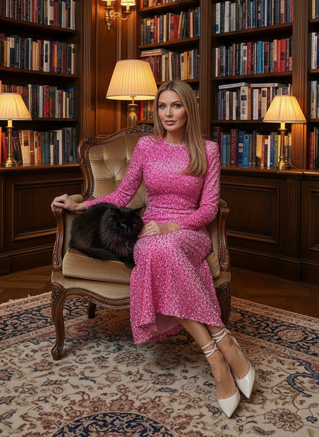 Sparkling midi length dress with long sleeves. The fabric is embroidered with sequins, creating a spectacular and memorable image. The dress is lined with an invisible zipper fastener.