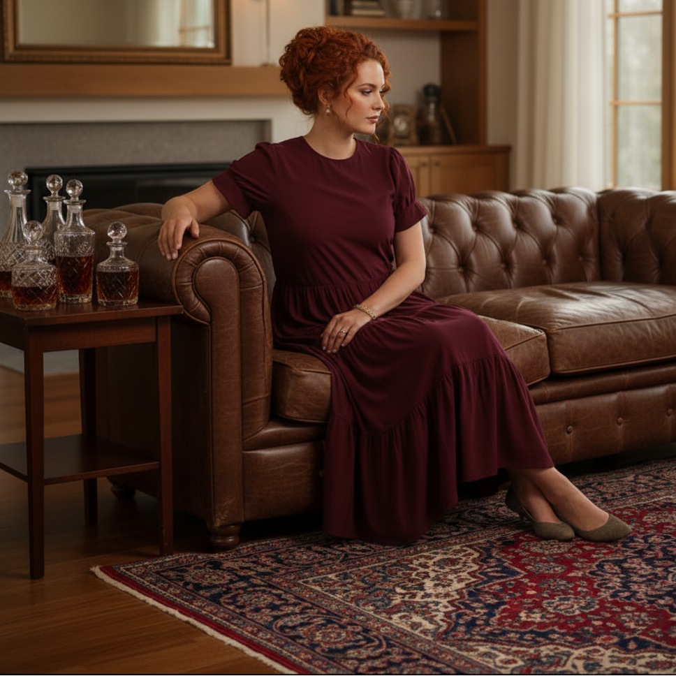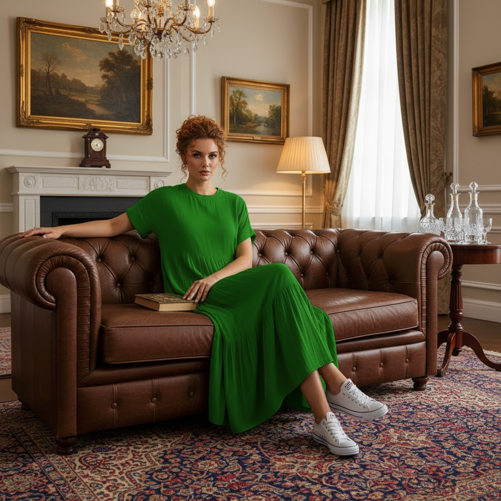 This Elegant Tiered Maxi Dress features a loose, sleeveless design with a frilled hemline, offering a comfortable yet stylish fit. Its long length and textured fabric make it a versatile choice, ideal for all seasons and ranging effortlessly from casual wear to a more polished, elegant look.
