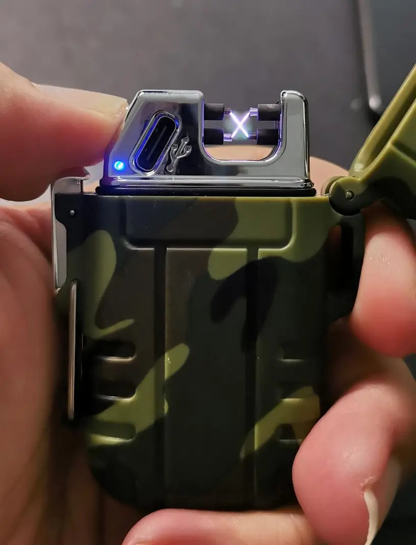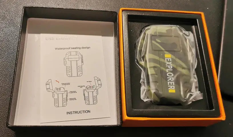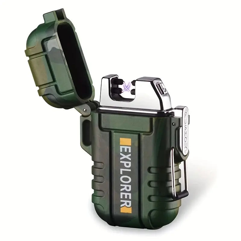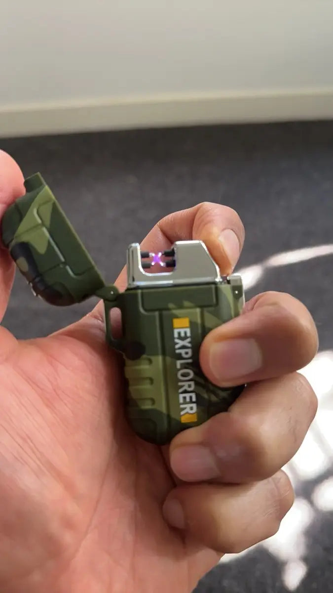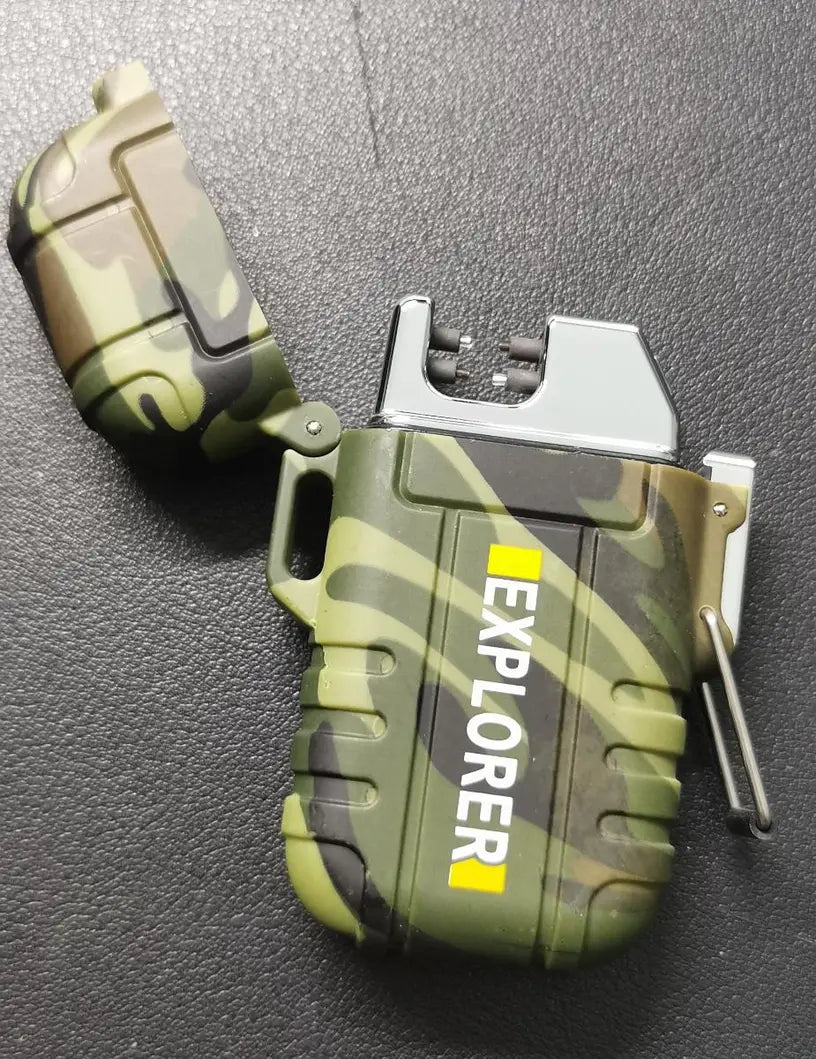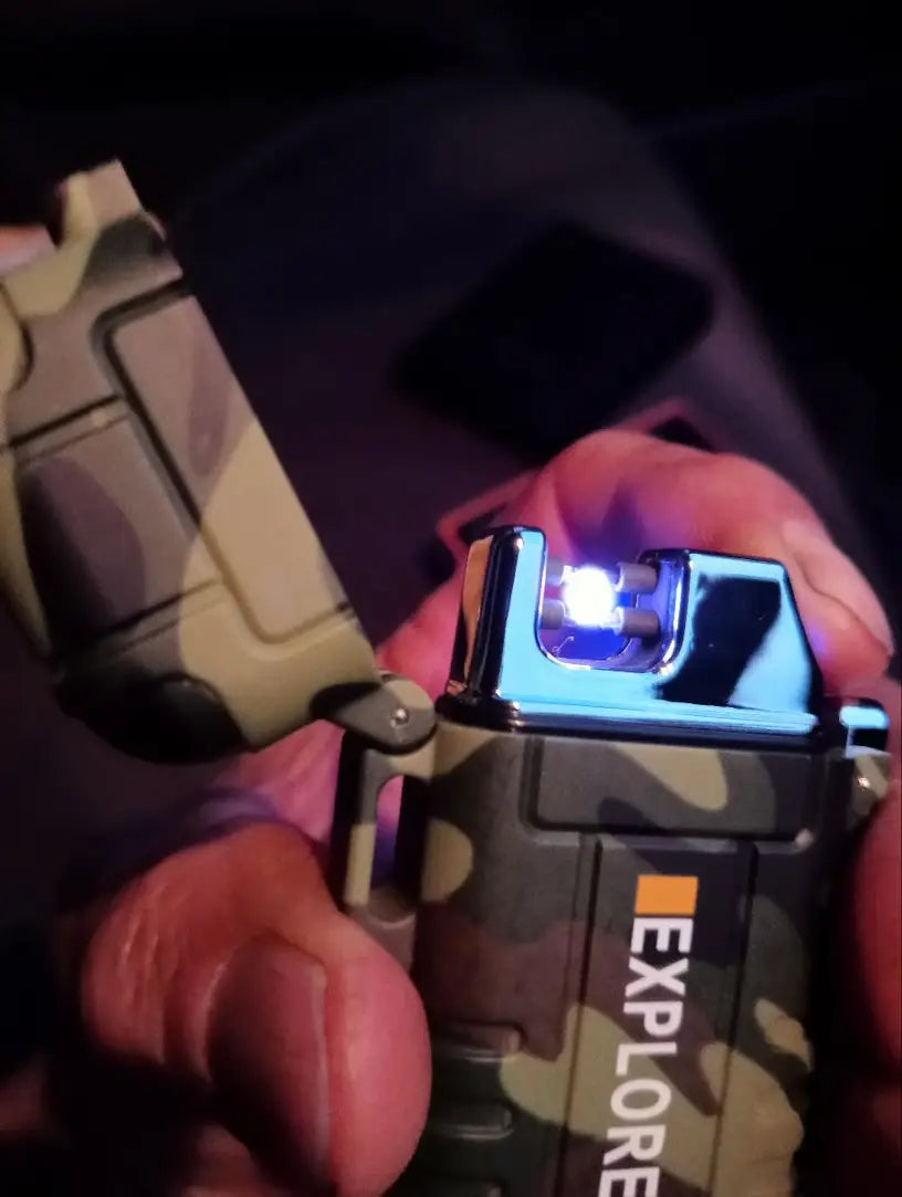 The EXPLORER Dual Arc Plasma USB Lighter delivers double arcs of flame-free power, perfect for sparking fires anywhere. This robust, chunky, and solid lighter comes neatly boxed, charges quickly, and is simple to operate. Lightweight and efficient, it's an essential tool for camping and outdoor adventures. Waterproof and reliable, this striking gadget makes an impressive gift for those who dare to explore.