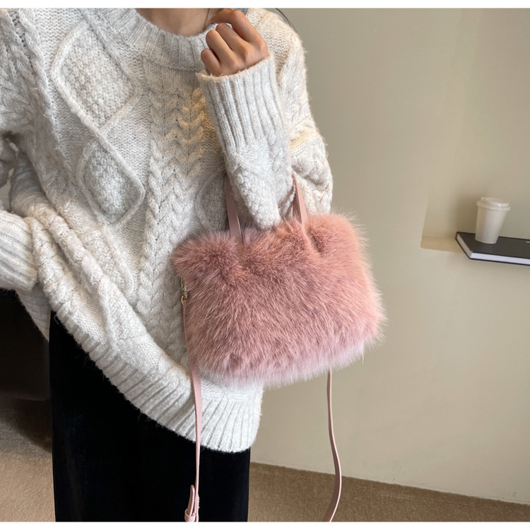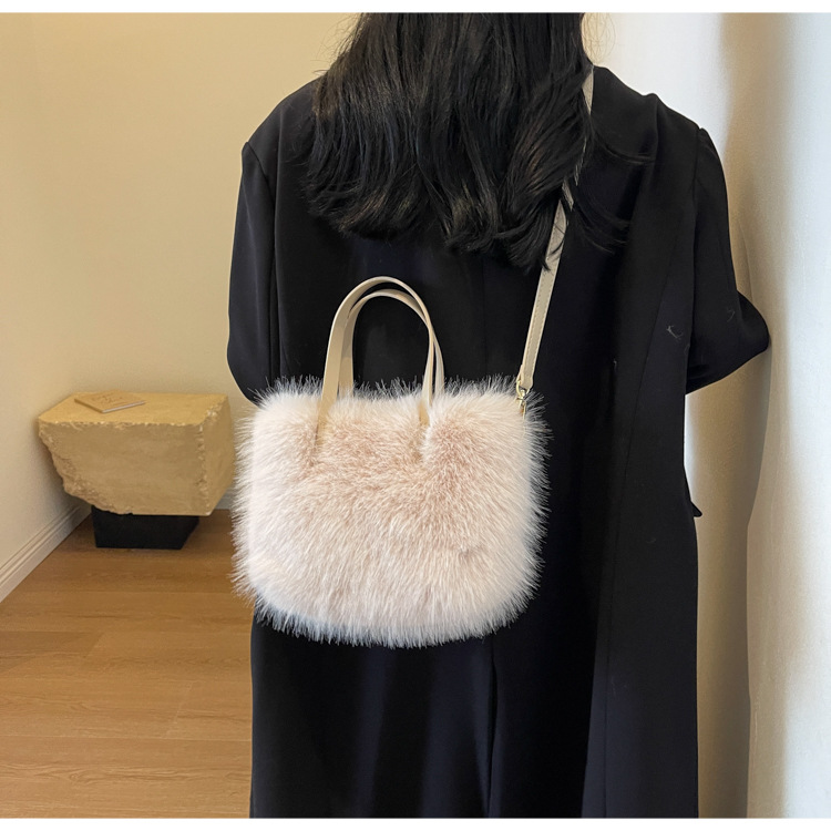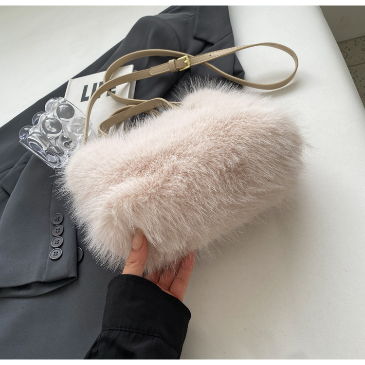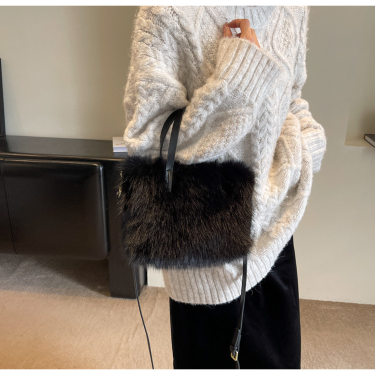 Elevate your style with this chic and versatile plush faux fox fur crossbody bag. Designed with a soft texture and trendy stitching details, it’s perfect for daily use. Featuring a secure zipper pocket, it combines functionality with fashionable elements.