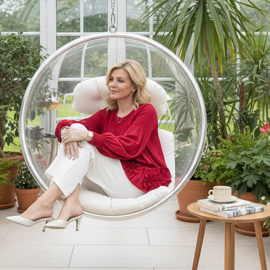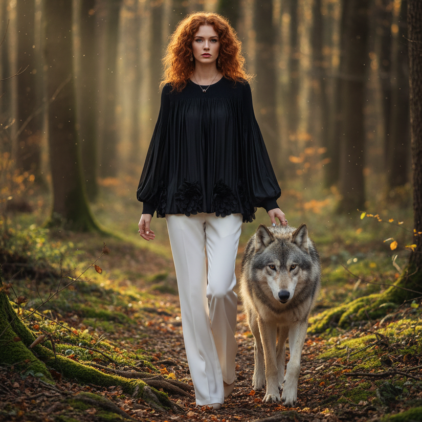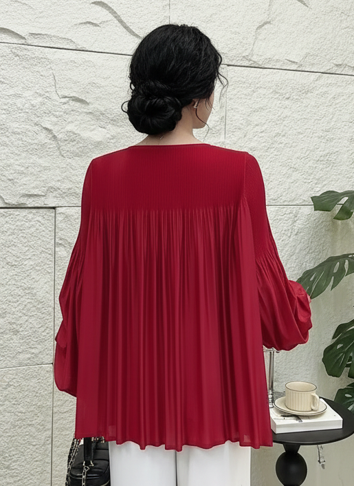 Charming Floral Applique Round-Neck Pleated Blouse Tops, featuring a playful round neckline and pleated design. This trendy loose-fit blouse effortlessly hides and highlights all the right places, making it a breeze to wear and flattering for every shape.