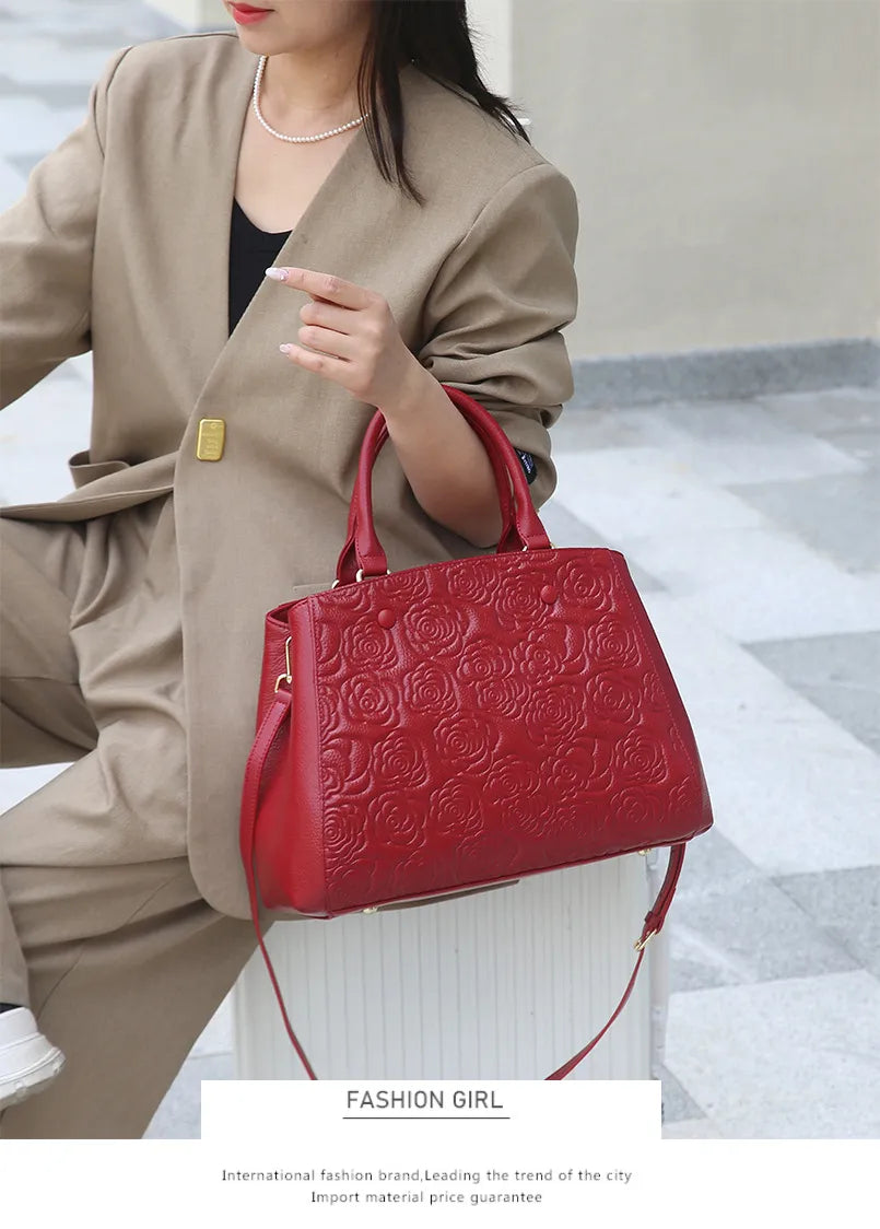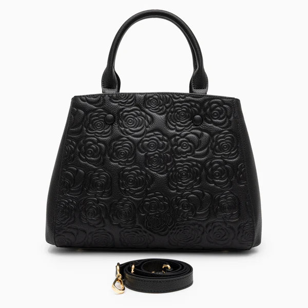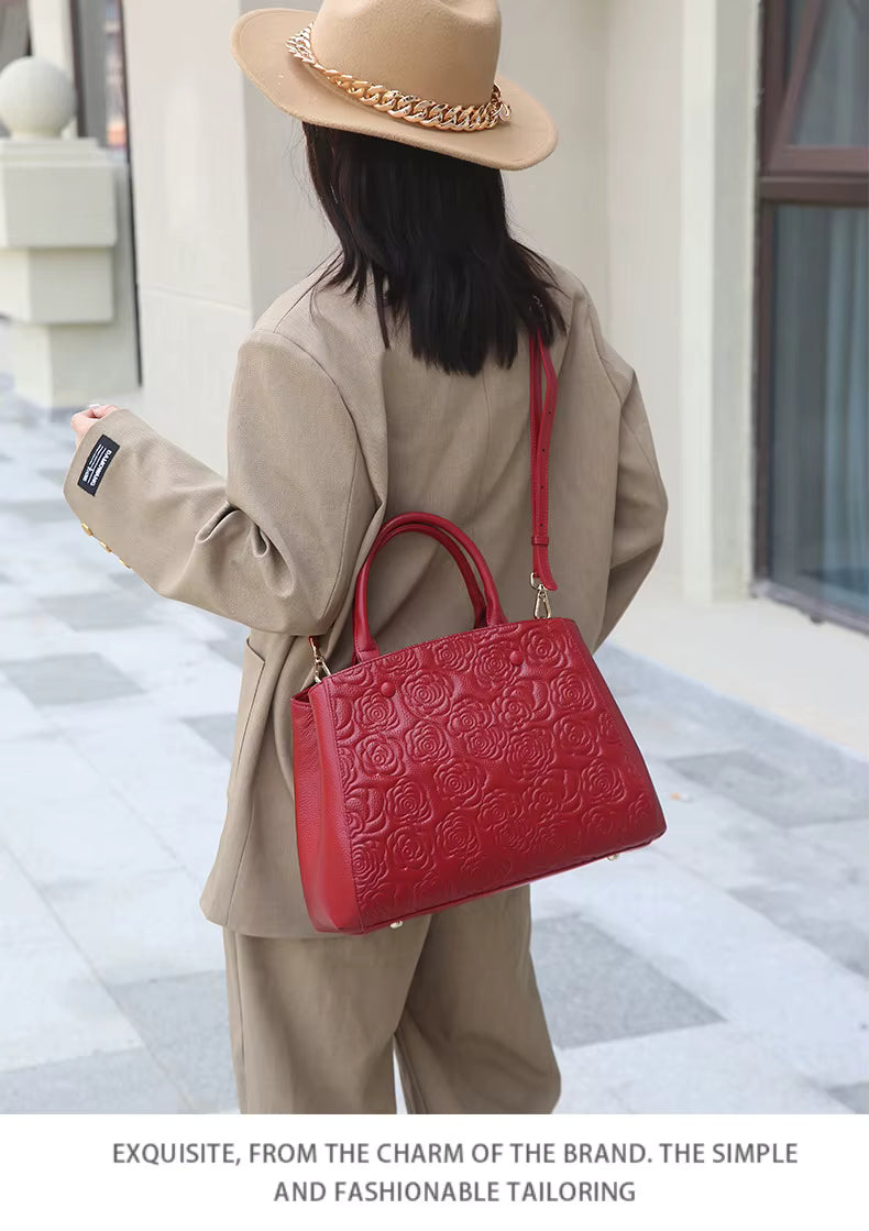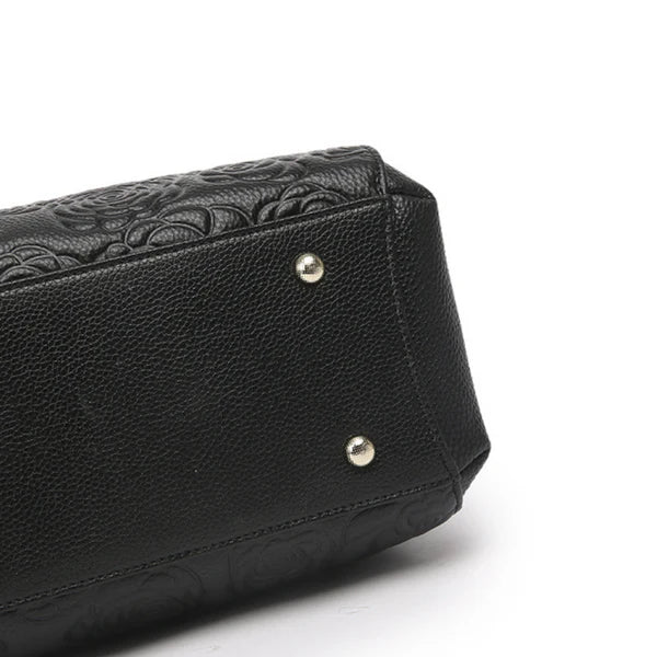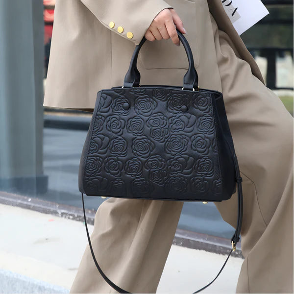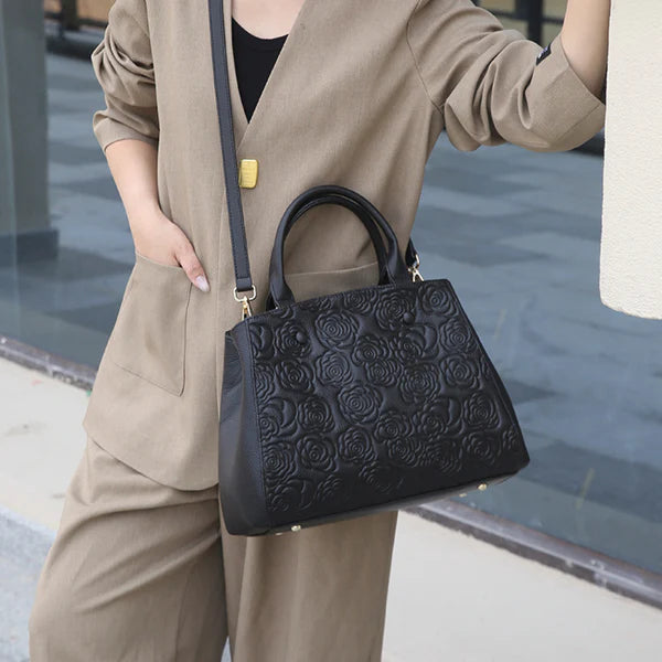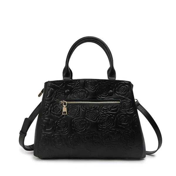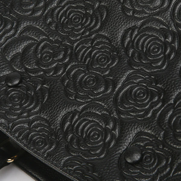Floral Embossed Genuine Leather Handbag